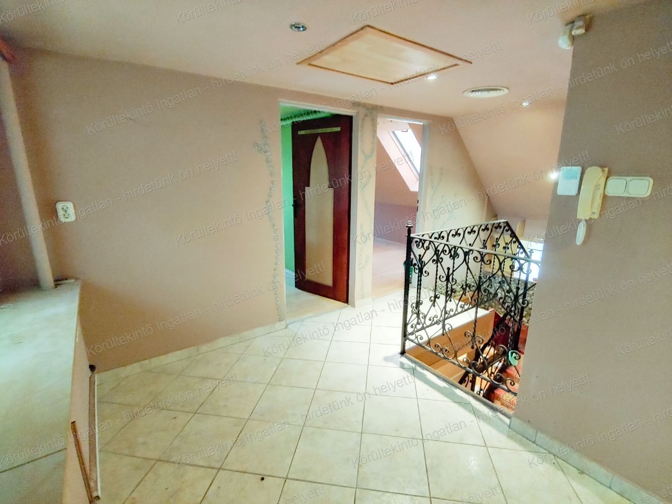 A hátsó lakás kb. 250 nm hasznos lakóterületű, szintén belső két szintes, nappali + 5 szobás (ebből az egyik moziszoba), valamint konyha-étkező, két fürdő, továbbá gardrób került kialakításra.