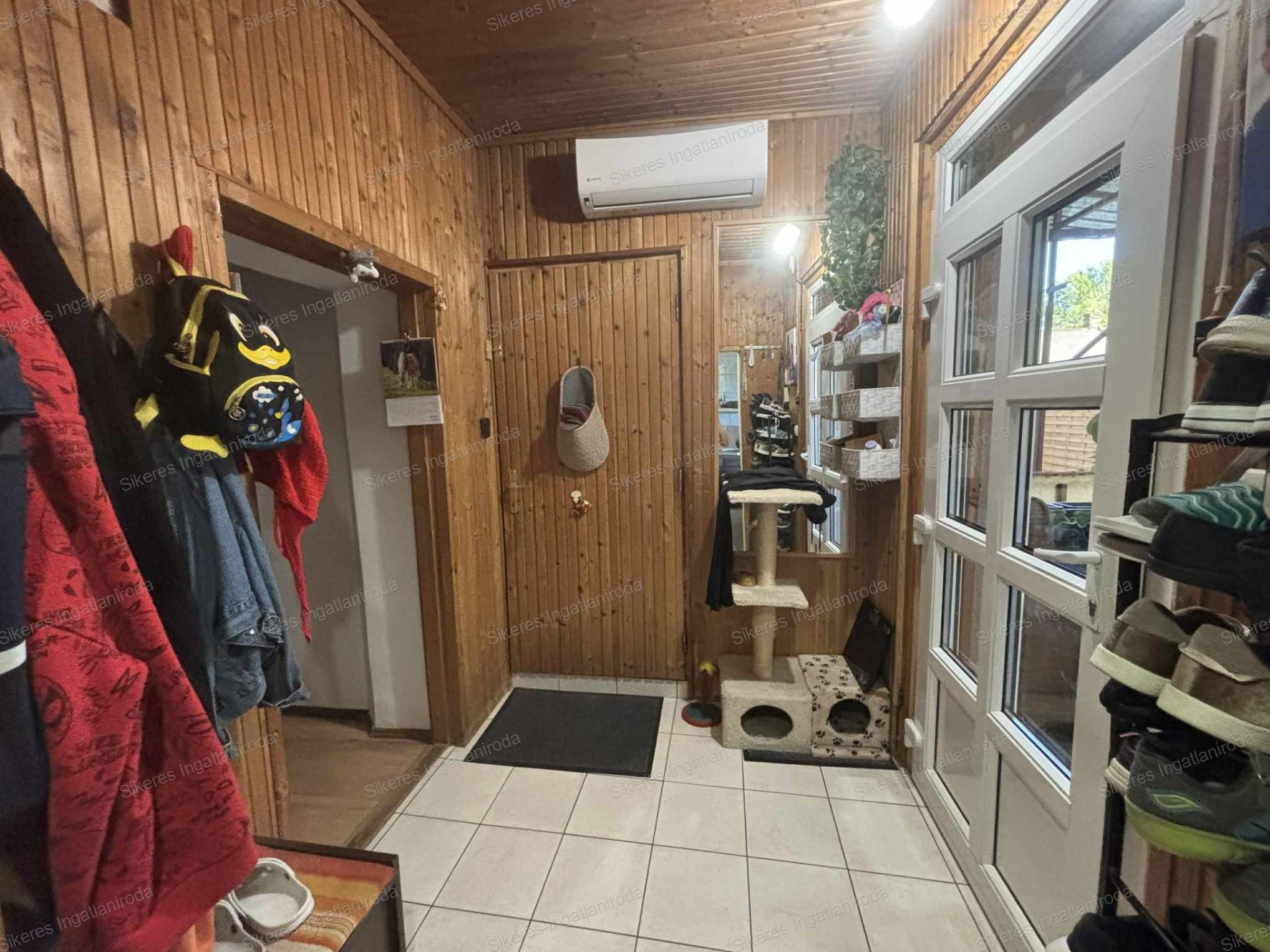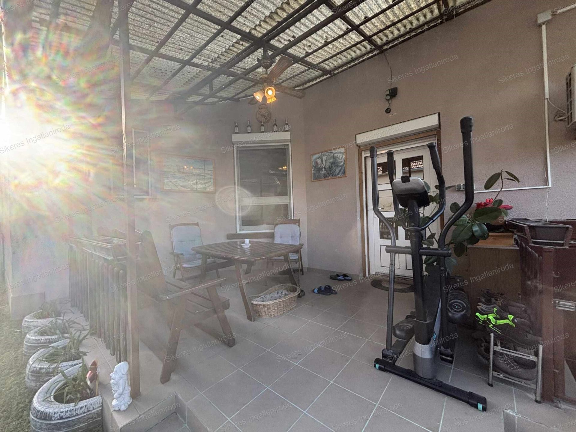 A szobákban igényes laminált padló, máshol modern járólap biztosítja az esztétikus és praktikus burkolatokat, a műanyag nyílászárók redőnnyel és szúnyoghálóval szereltek – a hőszigetelés és nyári komfort így garantált.