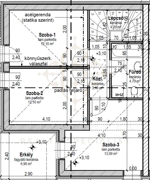 Az ingatlan praktikus elrendezésű, teljes értékű emeleti szinttel rendelkezik (nem tetőtér!).