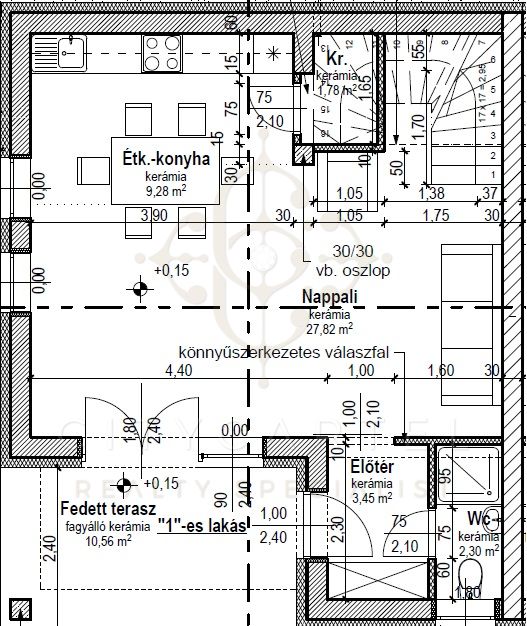 · Vasbeton sávalap, 30 cm-es téglafal, 15 cm homlokzati és 25 cm mennyezeti hőszigetelés