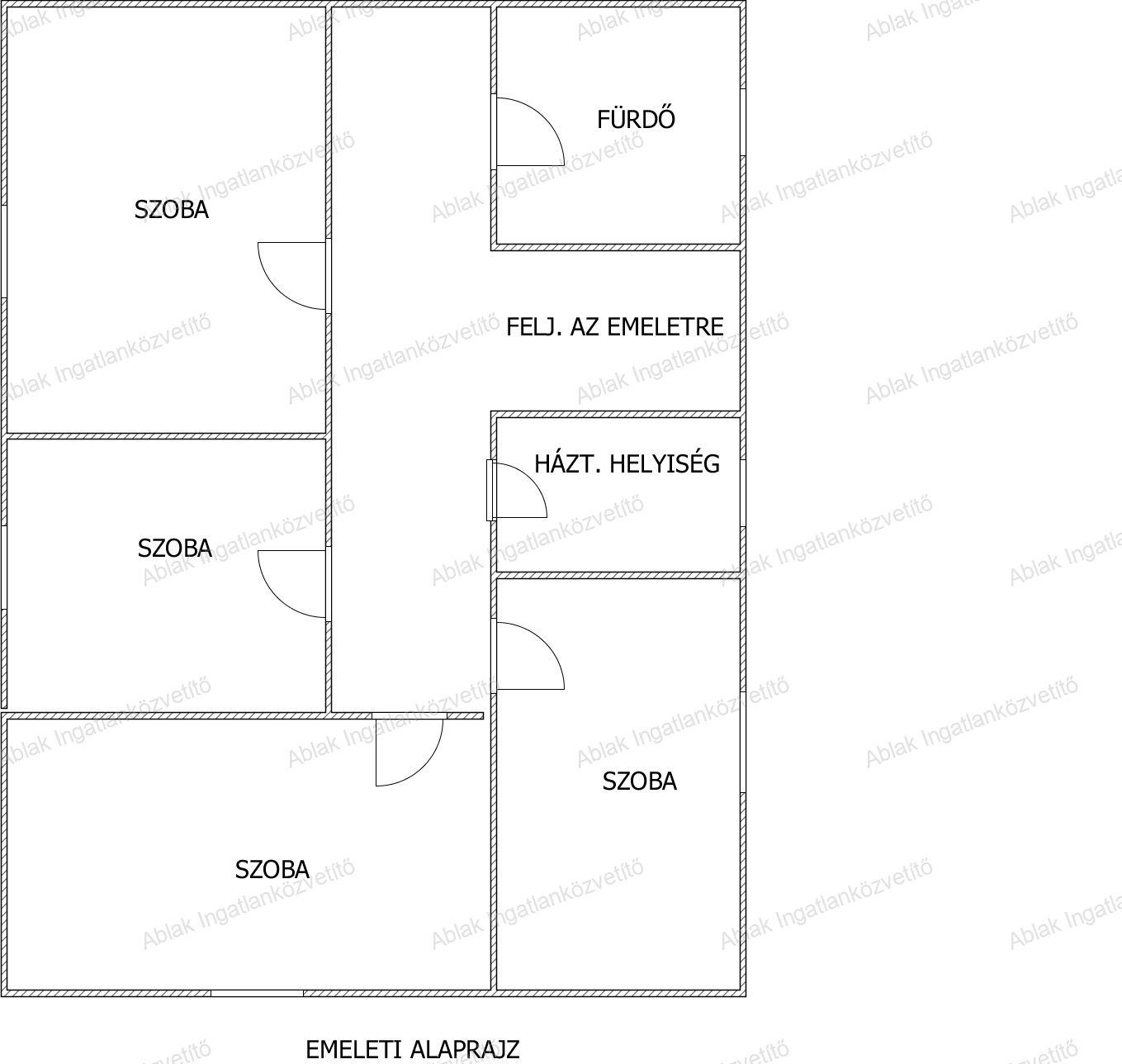 Emeleti részen: Tusolós fürdőszoba wc-vel, 4 nagy szoba és egy fél szoba található.