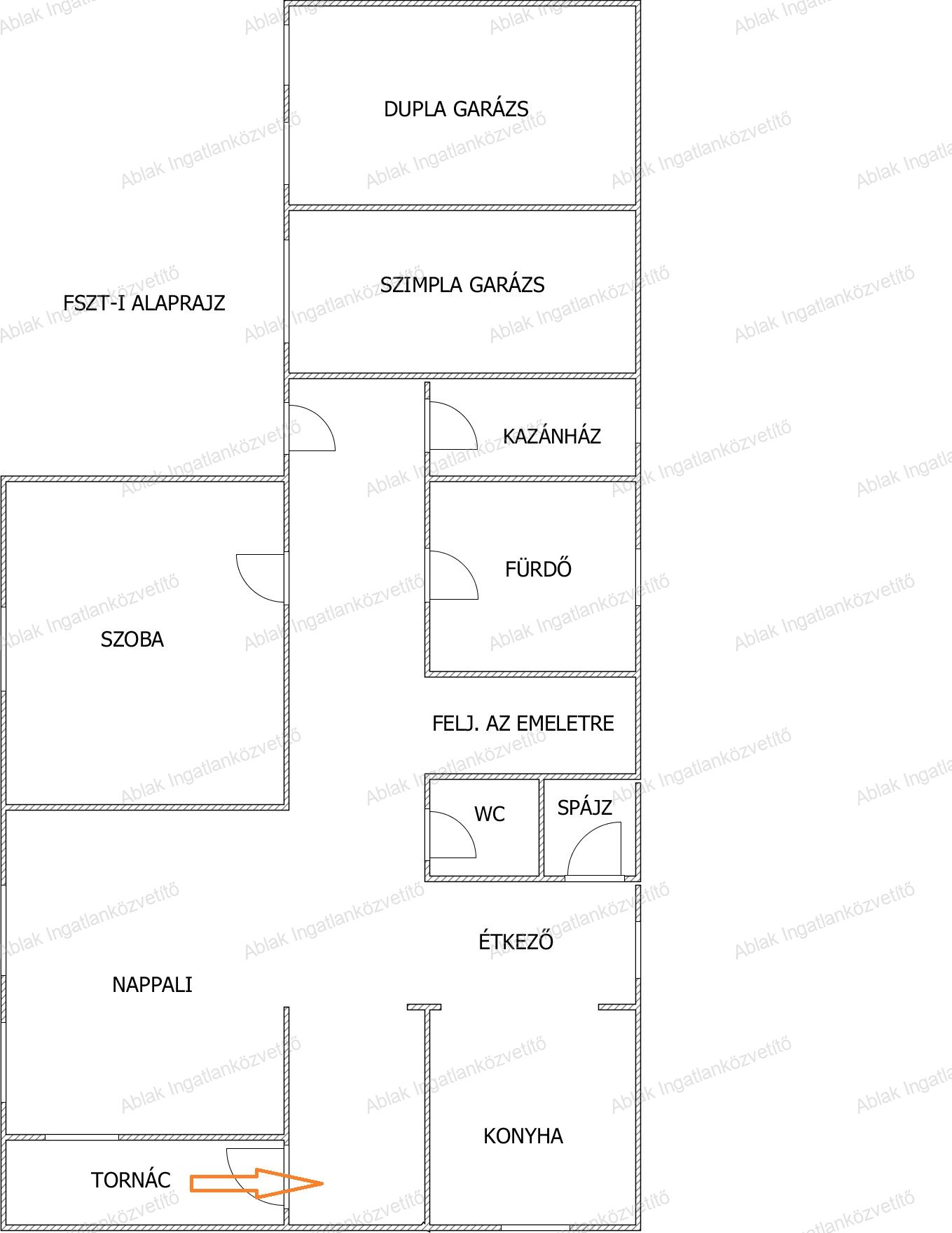 A ház elrendezése : Alsó szinten: Előszoba, nappali -étkező konyha, kamra, külön wc és fürdőszoba amelyben tusoló és sarokkád is kapott helyet illetve a folyosó végén egy hálószoba és egy mosókonyha található.