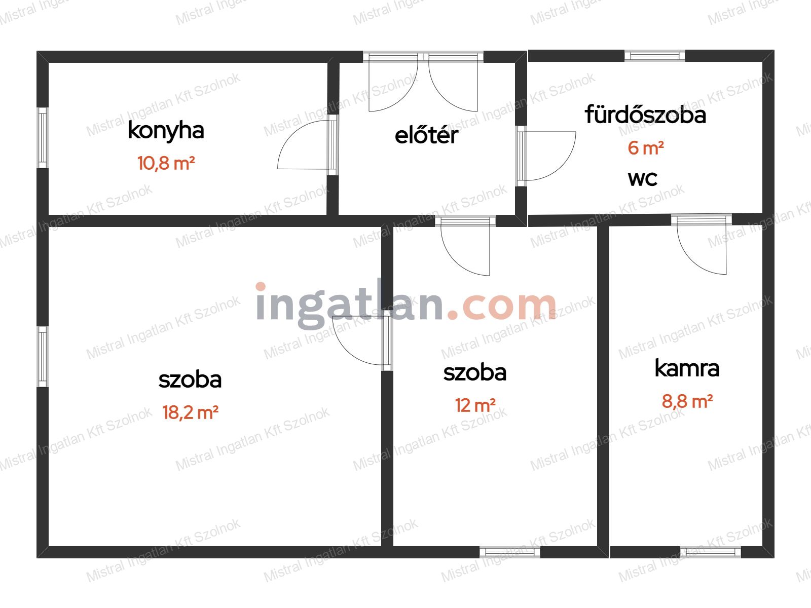 Az ingatlan alapterülete 60 négyzetméter, és egy 822 négyzetméteres telken helyezkedik el.