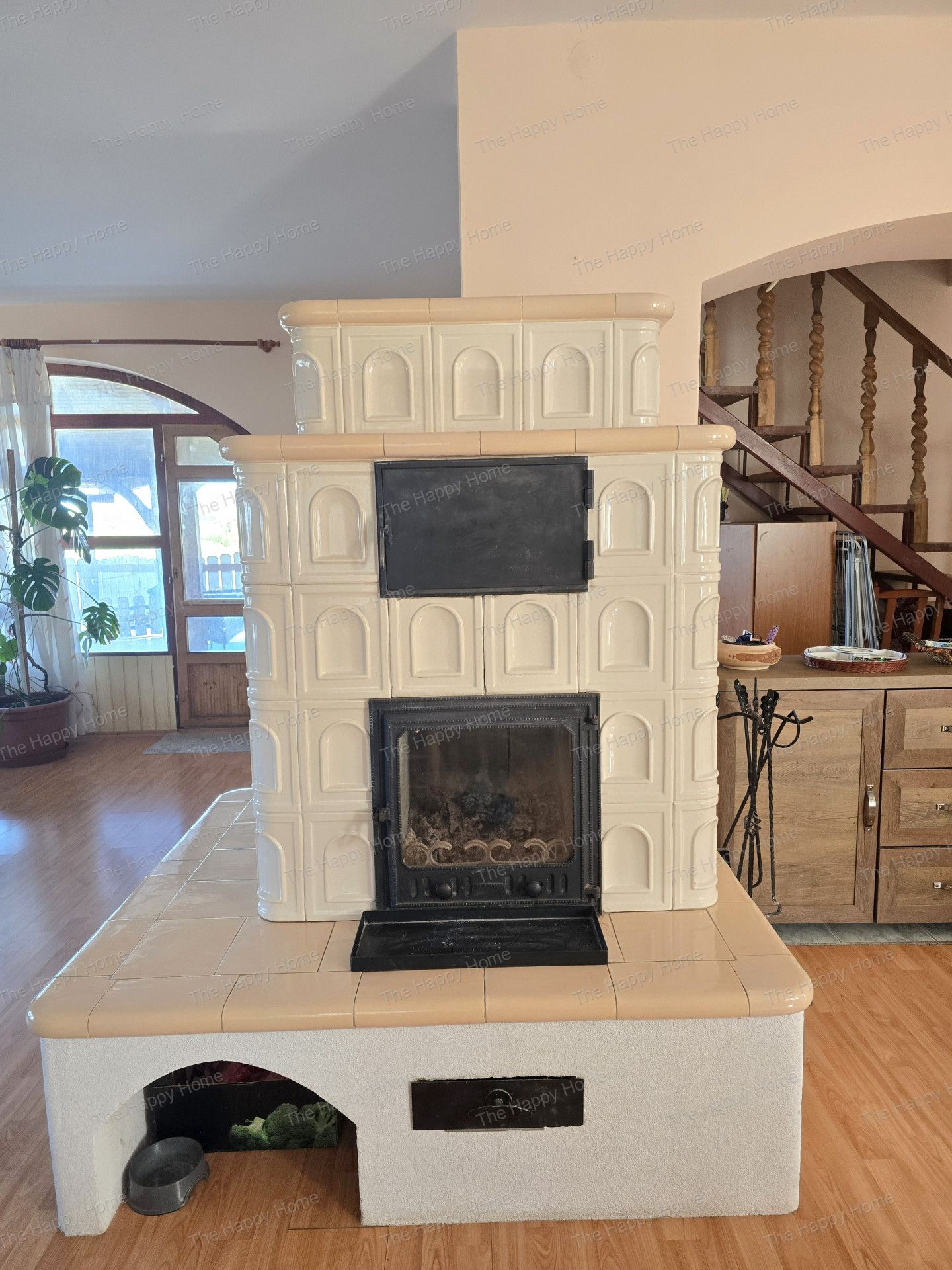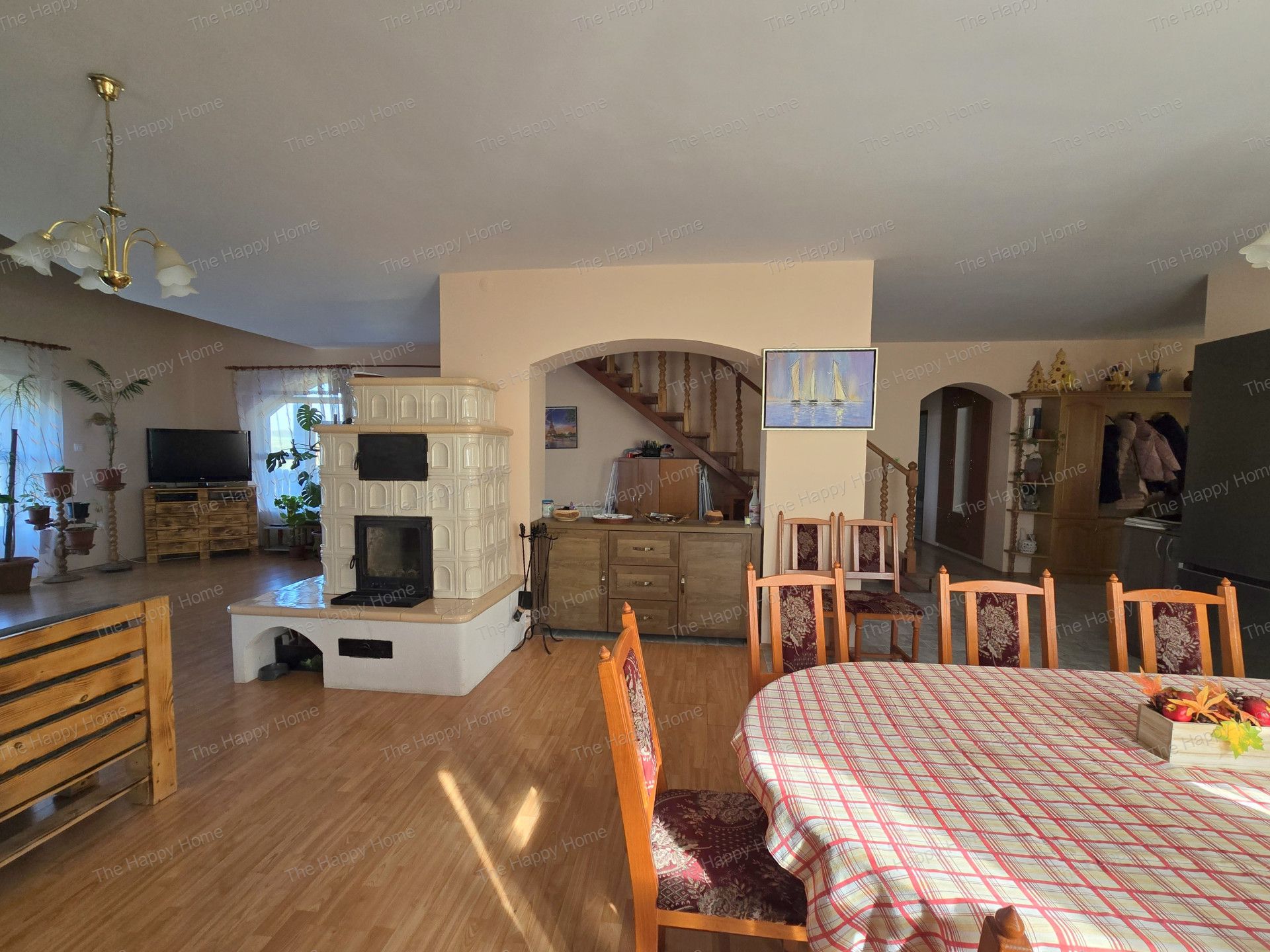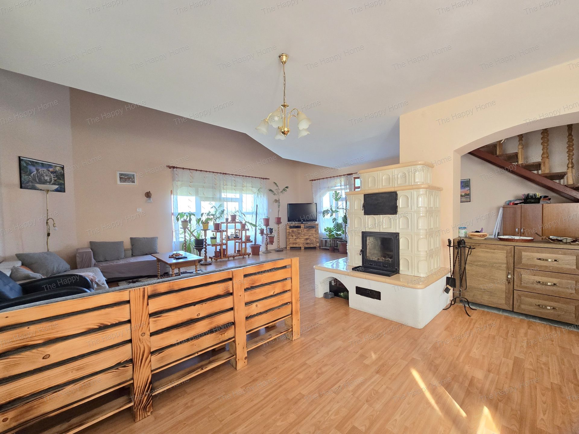 Amerikai konyhás galériás nappali (65 m²) cserépkályhával -ez az Otthon lelke- családi és baráti találkozók színhelye