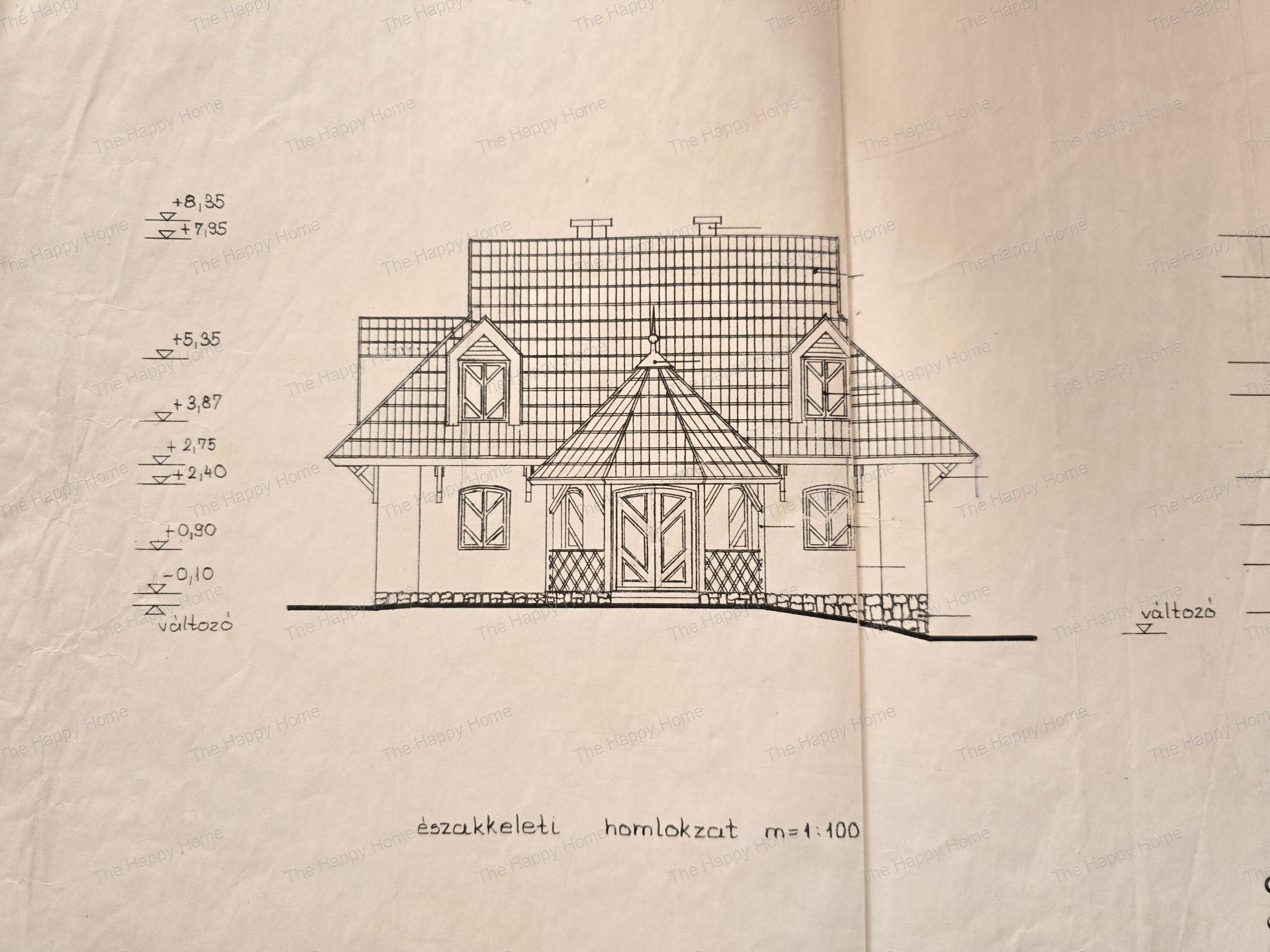 Emelet(75nm): közlekedő, 3 hálószoba, fürdő, WC, háztartási helyiség