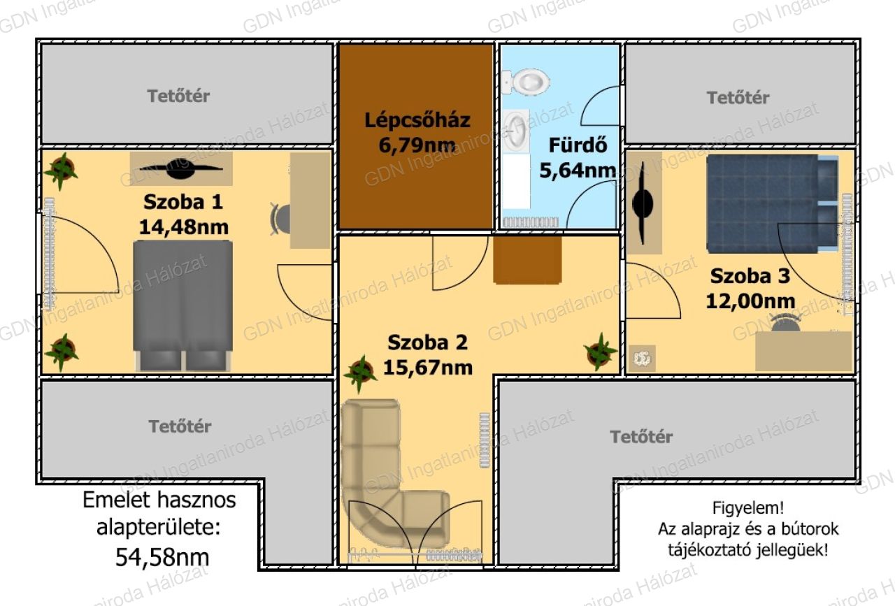 Az épület felső szintje a tetőtér felől 30cm szigetelést kapott. A felső szinten a tetőtér jelenleg nincs teljesen kihasználva, így akár további helységek kialakítása és beépítése is lehetséges.