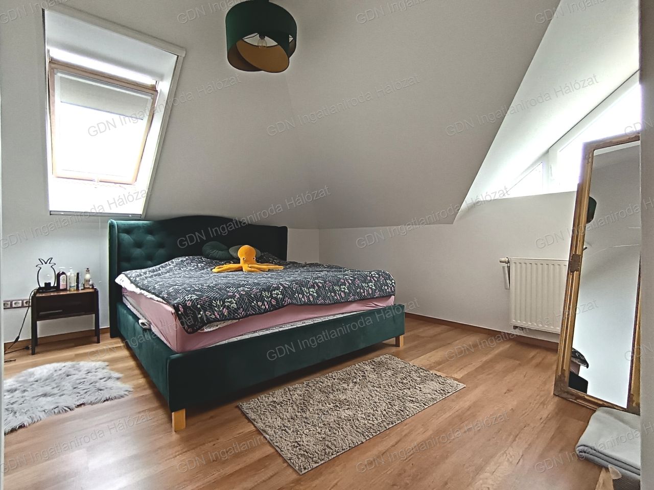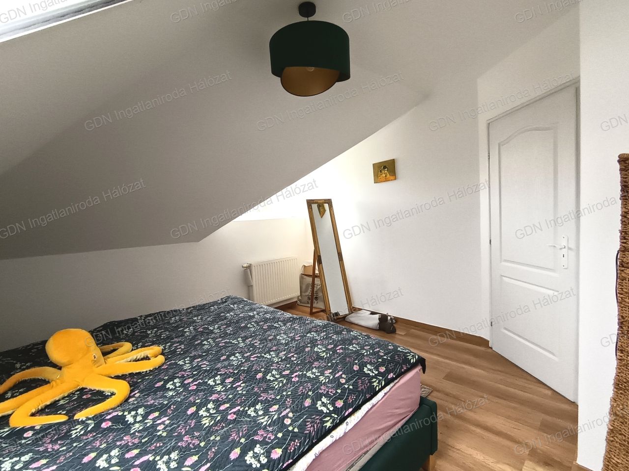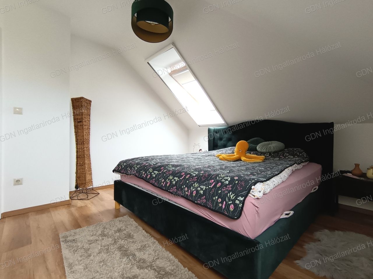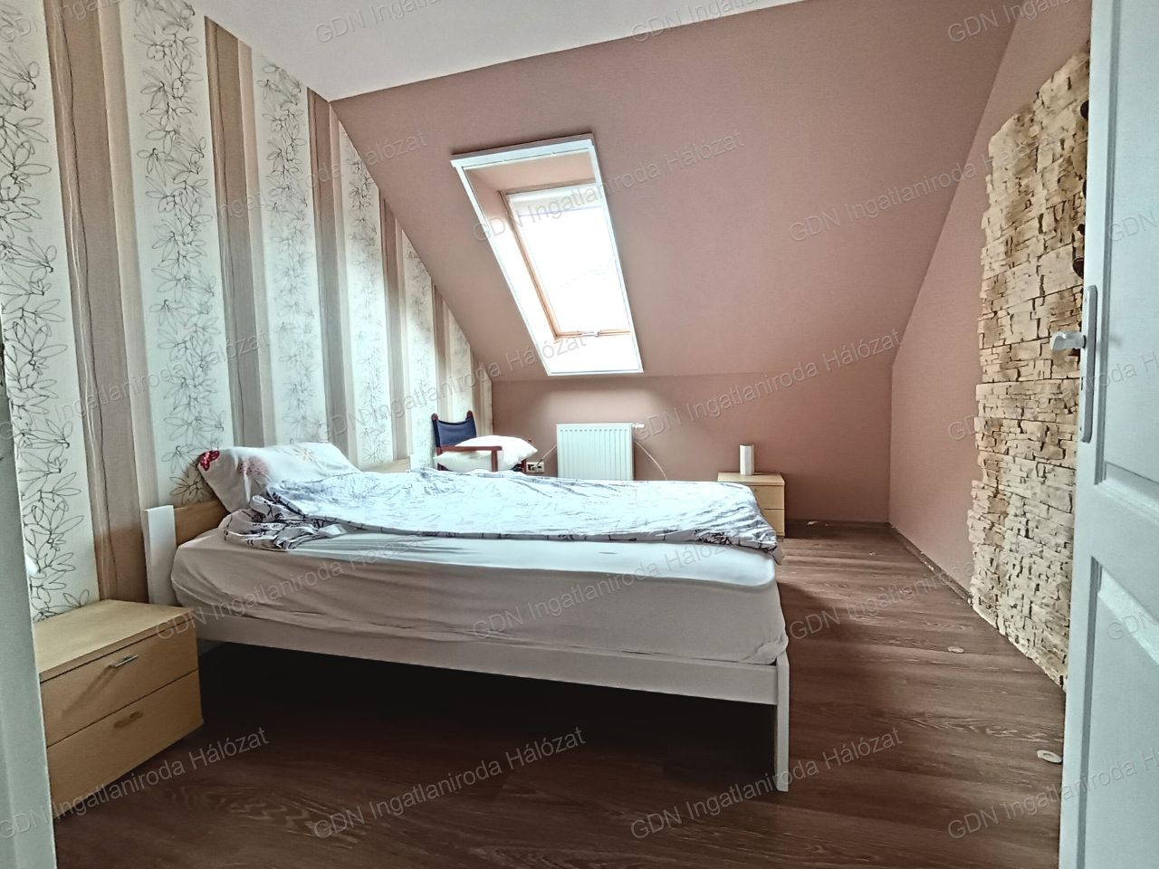 A beépített tetőtér 3 hálószoba, egy gardróbszoba, egy fürdőszoba, egy olvasó galéria, és egy tágas közlekedő kapott helyet.
