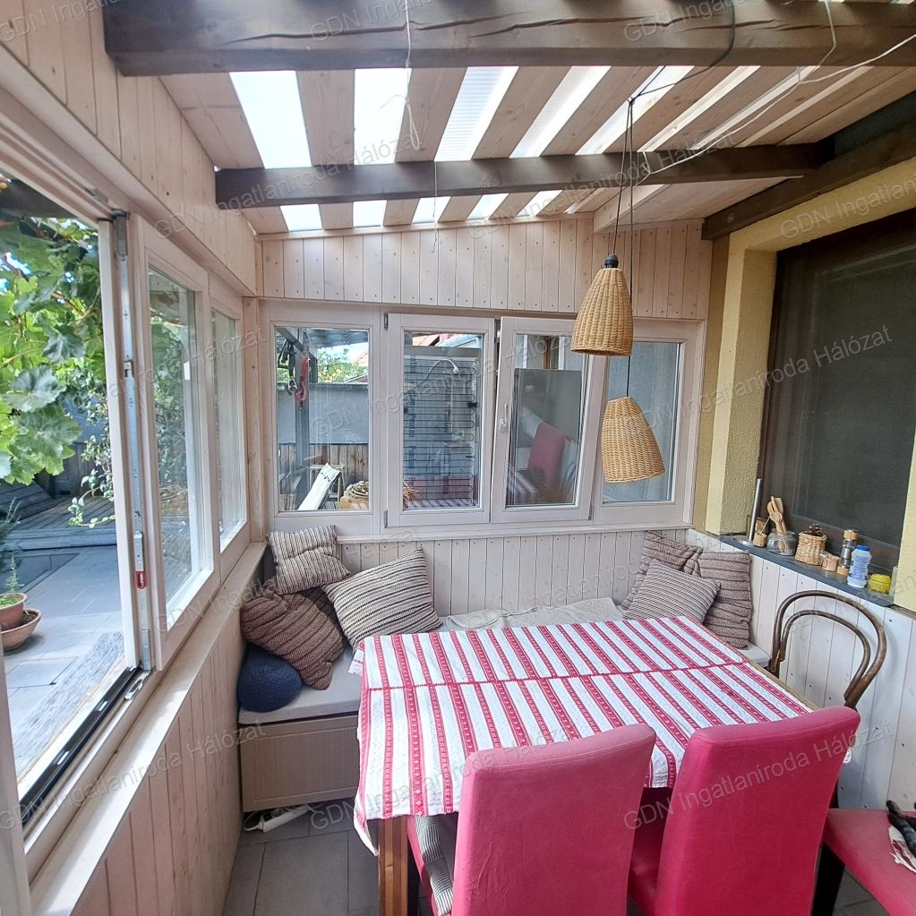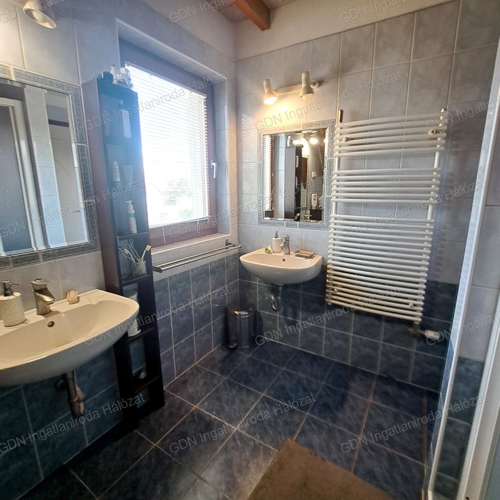Eladásra kínáljuk Veszprémben, ezt a csendes zöldövezeti két szintes családi házat a város szívében. Szeretne egy olyan otthont, ahol madárcsicsergésre ébred, mégis minden fontos szolgáltatás karnyújtásnyira megtalálható? Fedezze fel ezt a gyönyörű családi házat a Dózsaváros szívében. A családi ház városra néző kilátással rendelkezik, valamint egy gyönyörű hangulatos kertel ahol egy kocsibeálló és két melléképület is helyet kapott, illetve az egyik melléképületben egy infraszauna is található. Szobák száma: 7 szoba (az alsó szinten 2 + 1 fél, az emeleti részen 3+1 fél szoba található, emeletenként külön fürdő és wc). A felső lakrész a házból is illetve külön lépcsőházból is megközelíthető, így két generációnak is megfelelő. Az épület rendelkezik napelemes rendszerrel, amely a teljes villanyfogyasztást ellátja. (4,57kwp). Valamint kialakításra került egy szép télikert is. Építés éve: 2000. Alapterület: 244 m² Telek: 300 m² Szerkezet: tégla Tetőszerkezet: jó állapotú, bramac cserép Fűtés: kondenzációs gázkazán + padlófűtés + cserépkályha Miért éppen ez az ingatlan? Kiváló elhelyezkedés a város egyik legszebb, természetközeli részén Két szint – többgenerációs megoldás is lehetséges Családi otthonnak és befektetésnek is ideális Lépjen velünk kapcsolatba még ma, és fedezze fel személyesen ezt az izgalmas lehetőséget! Egy ilyen adottságokkal rendelkező ingatlan ritkán kerül piacra Veszprémben – ne maradjon le róla! Amennyiben a veszprémi GDN Ingatlaniroda által kínált ház, vagy bármely, a kínálatunkban található ingatlan felkeltette érdeklődését, forduljon hozzám bizalommal! Ingatlanirodánk díjmentes, banksemleges hitelügyintézéssel, illetve ügyvédi tanácsadással is áll Ügyfeleink rendelkezésére!
