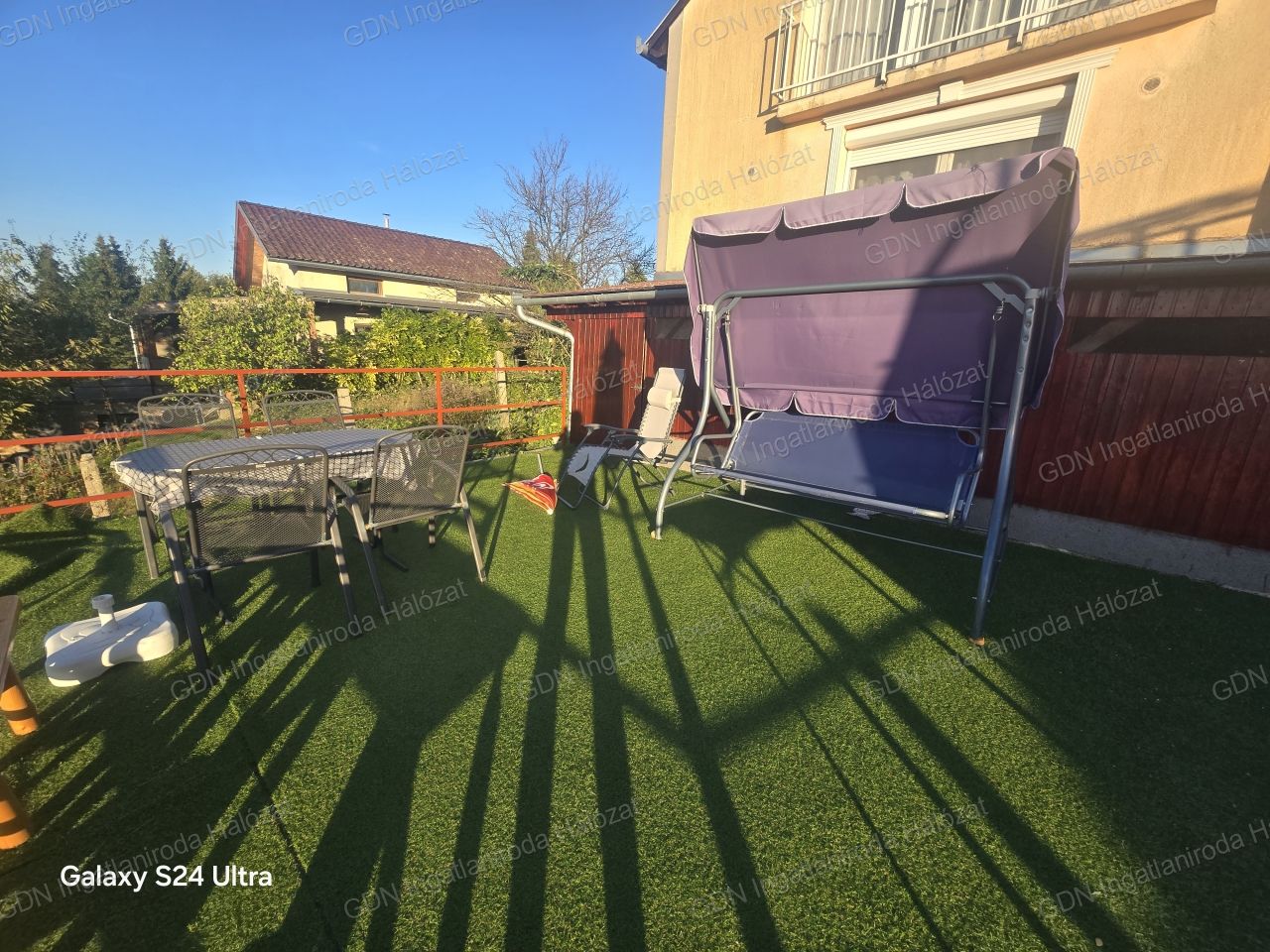 Az ingatlanhoz tartozik egy szépen karbantartott, 1160 négyzetméteres terület is, amely számos lehetőséget kínál. Az udvaron, a telek bejáratánál 2 autó beállására alkalmas fedett kocsibeálló található. Az épület kert felőli oldalán egy hangulatos pihenő- grillező udvarrész várja a család tagjait kikapcsolódásra, családi beszélgetésekre, feltöltődésre.