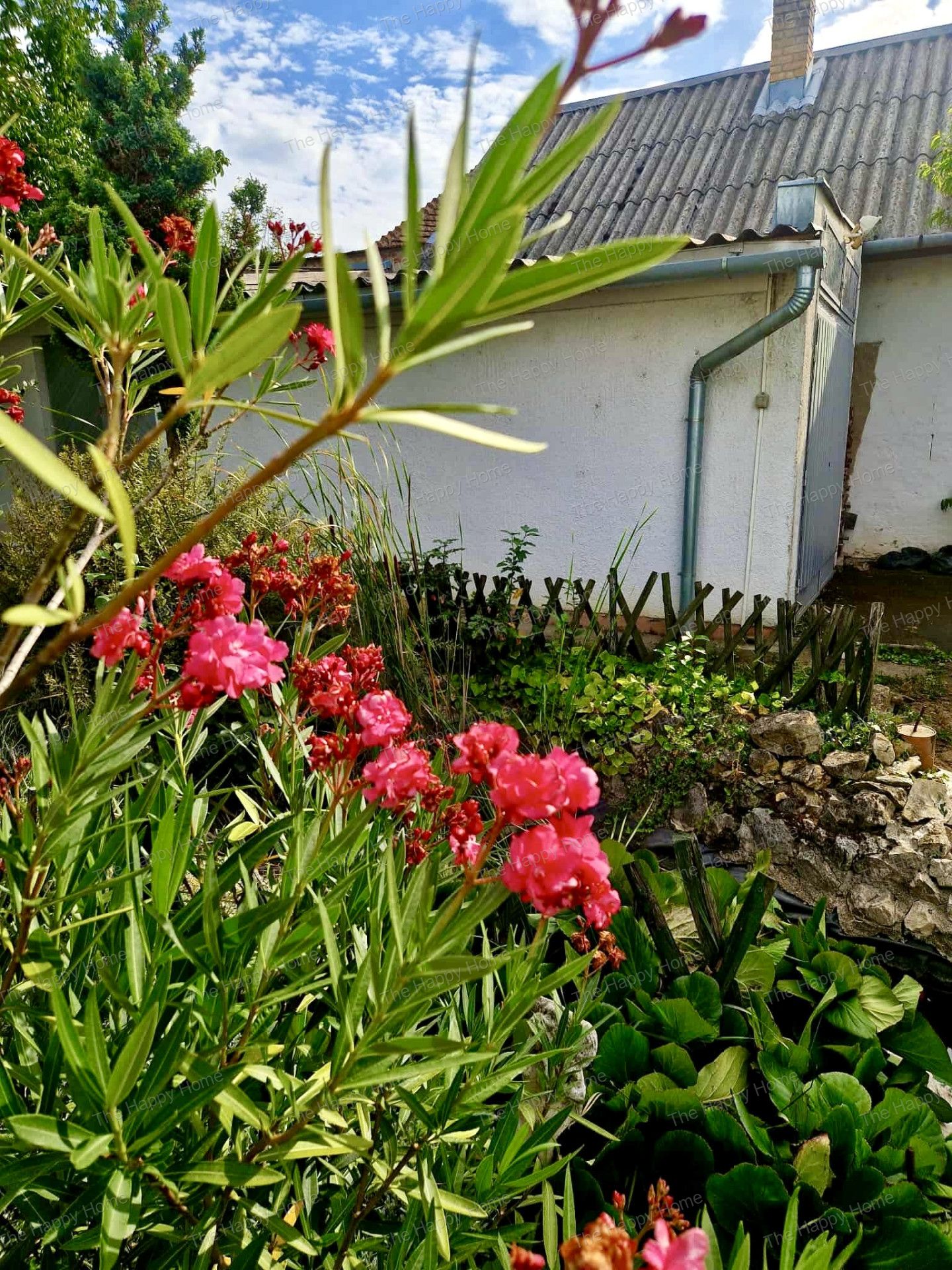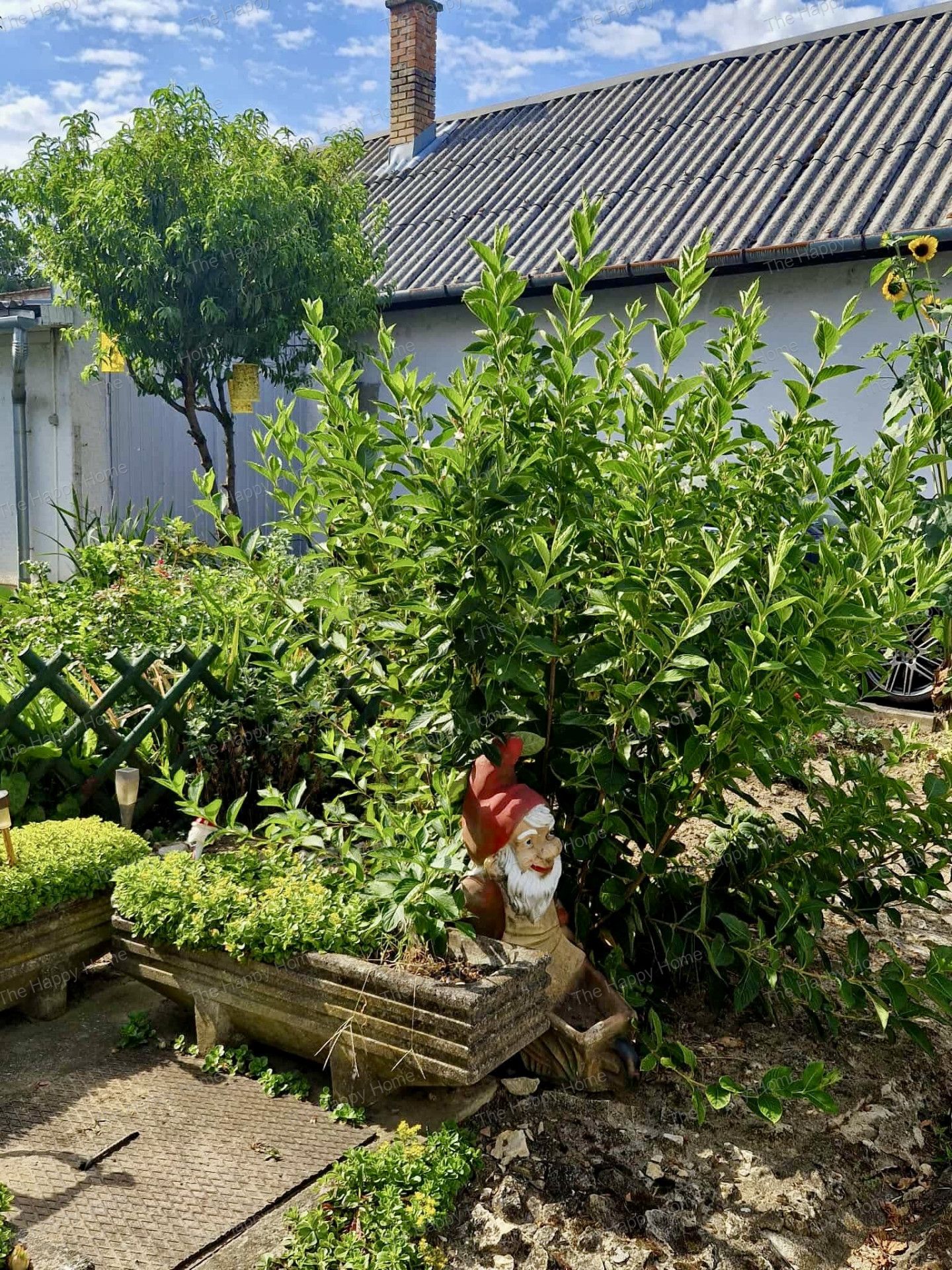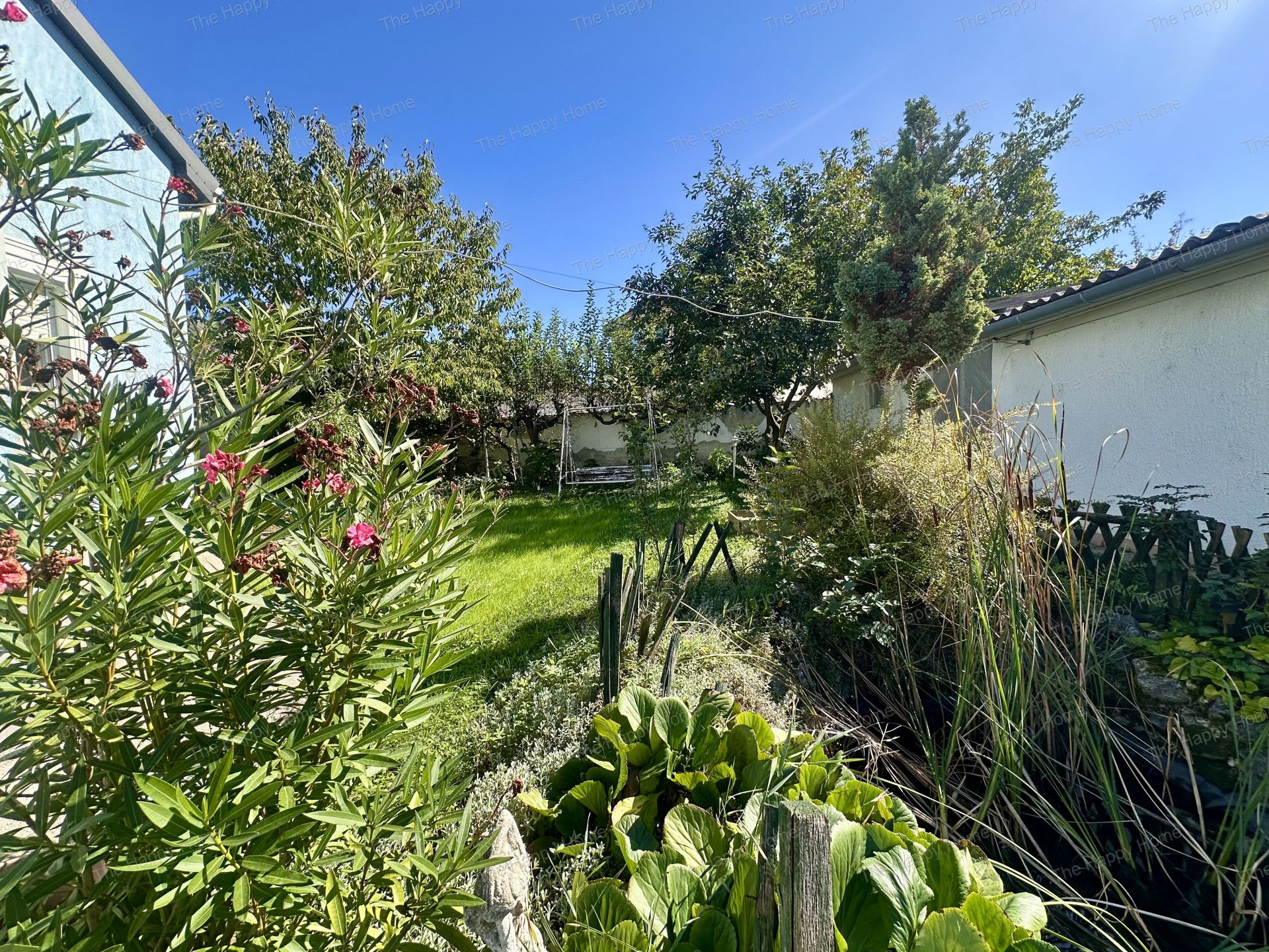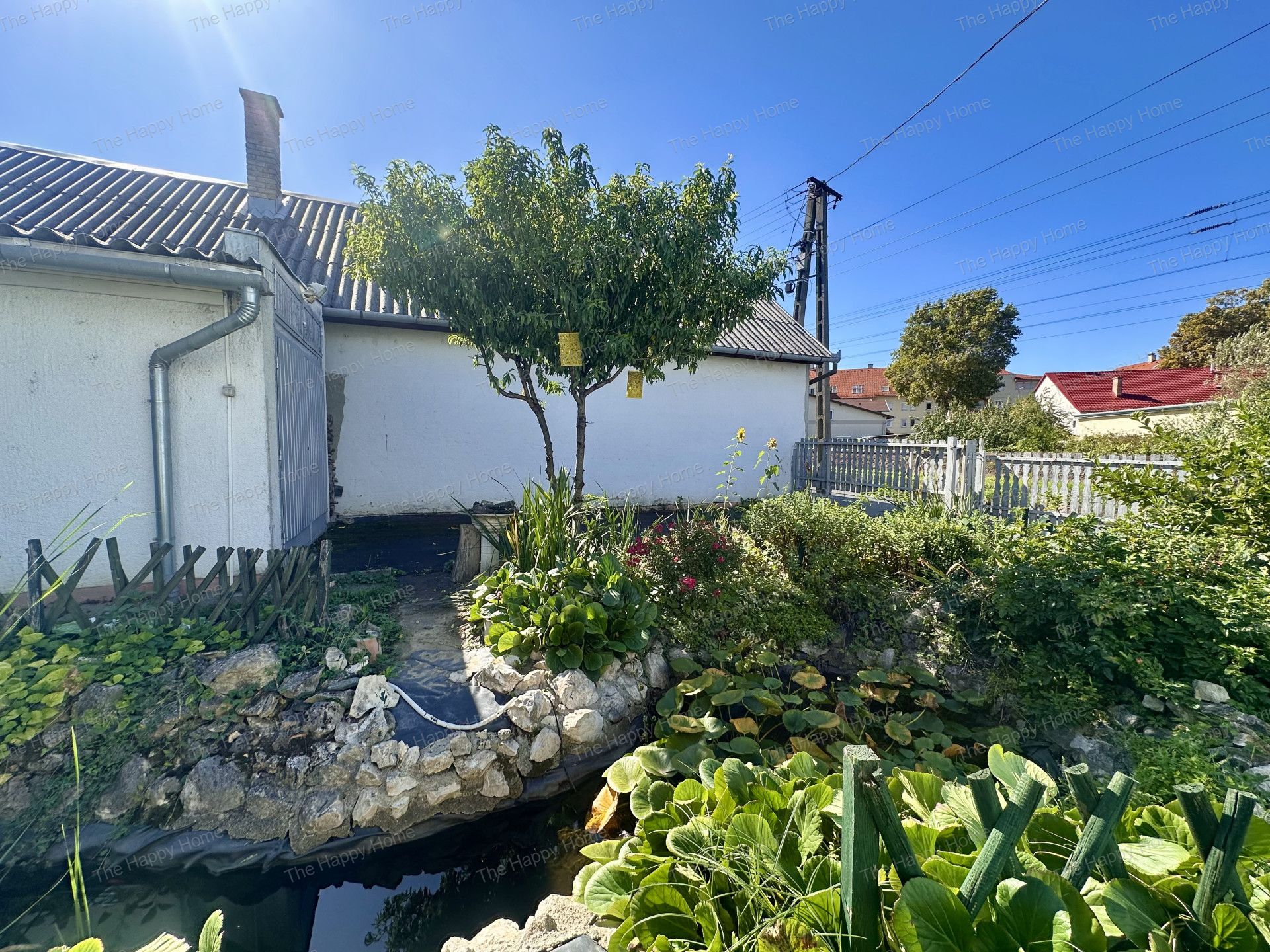 A beton alapra épült tégla falazatú ingatlan egy teljesen körbekerített, 480 m²-es, gondosan ápolt telken helyezkedik el, amelynek ékessége a cseresznyefa, meggyfa, almafák és egy hangulatos kerti tó – ideális hely a pihenéshez, kertészkedéshez vagy családi pillanatokhoz.