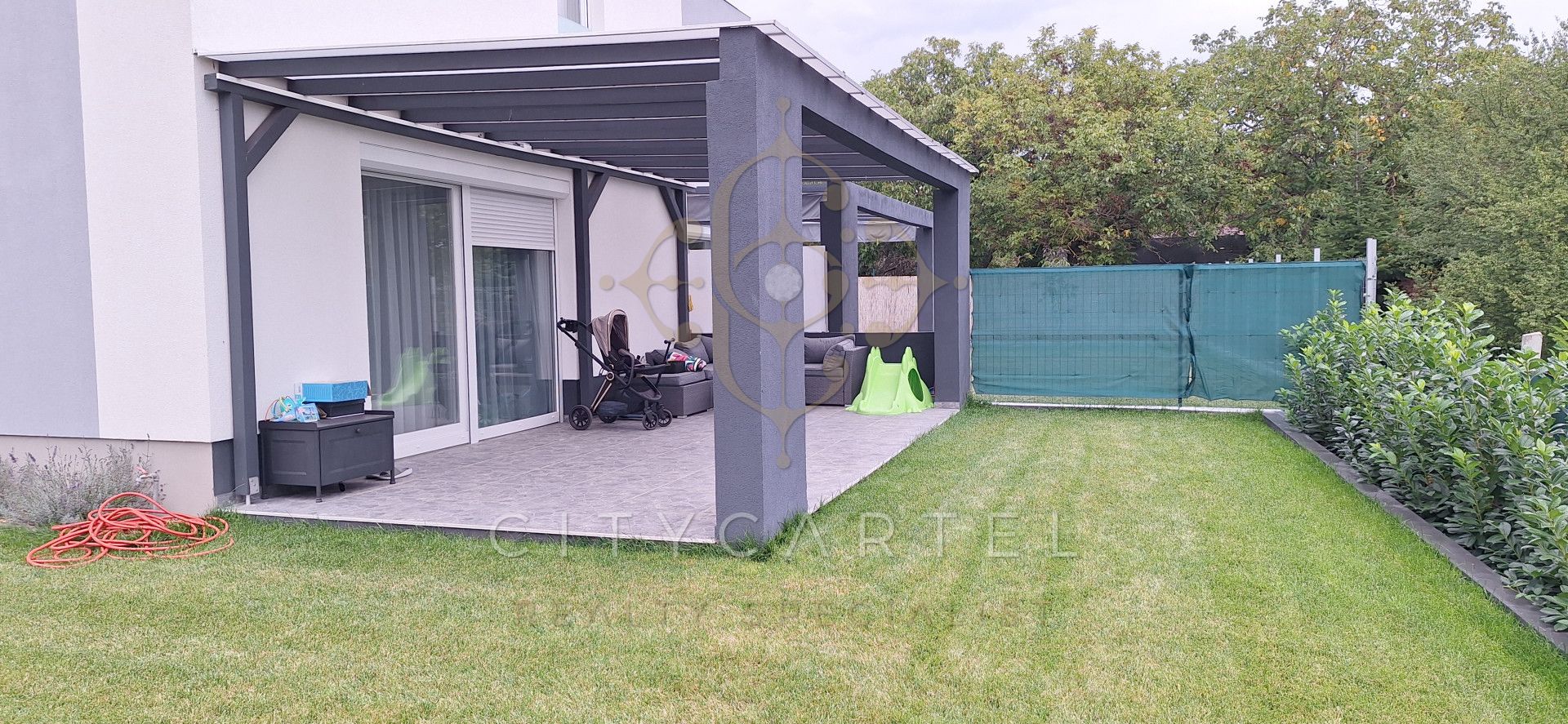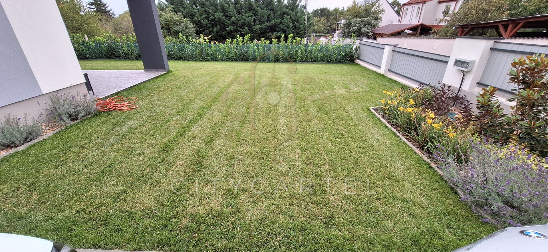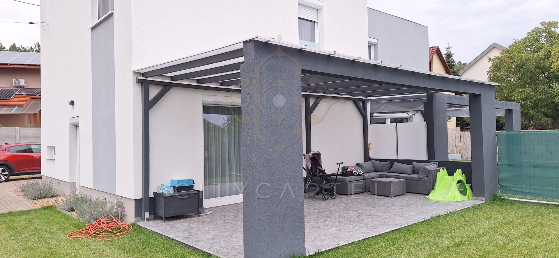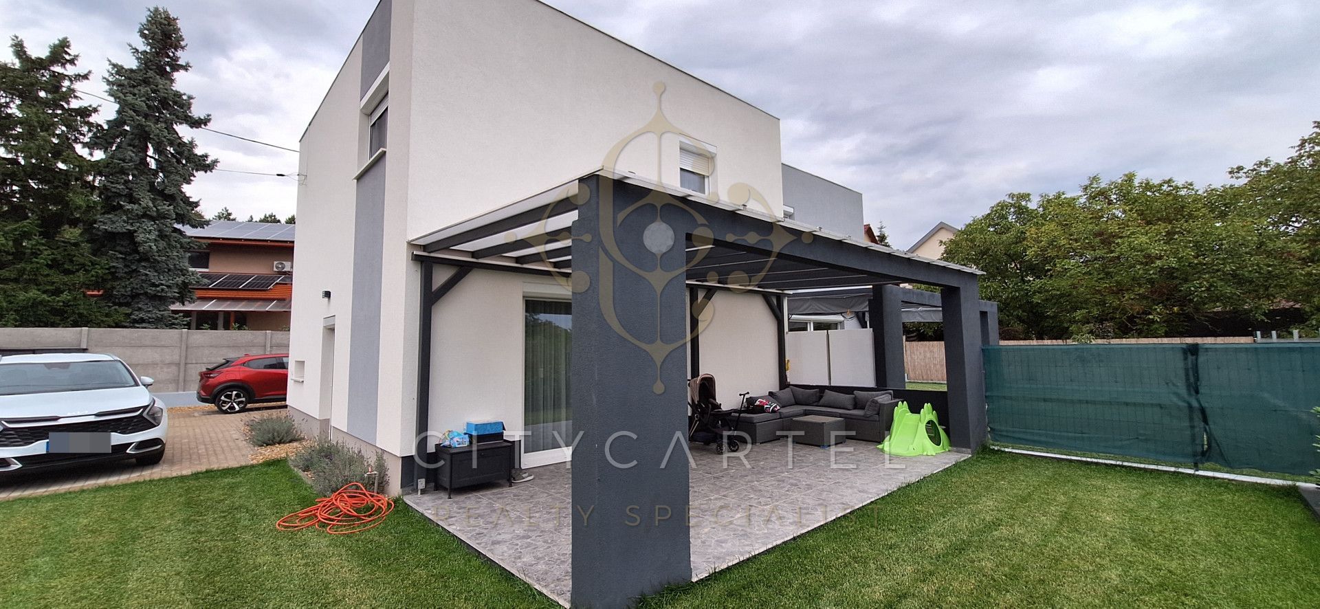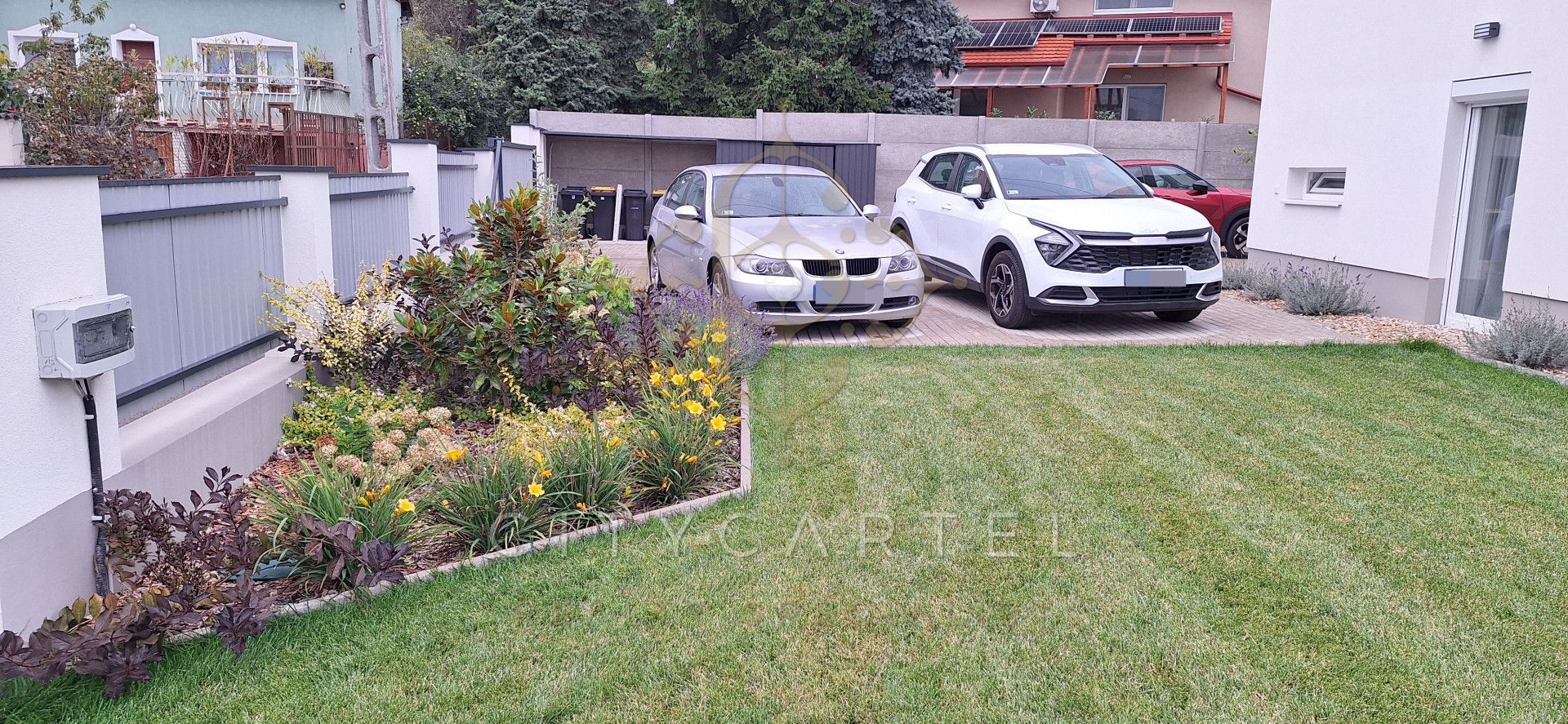 Saját terasz, kertrész, 2 autó részére beálló az udvaron.