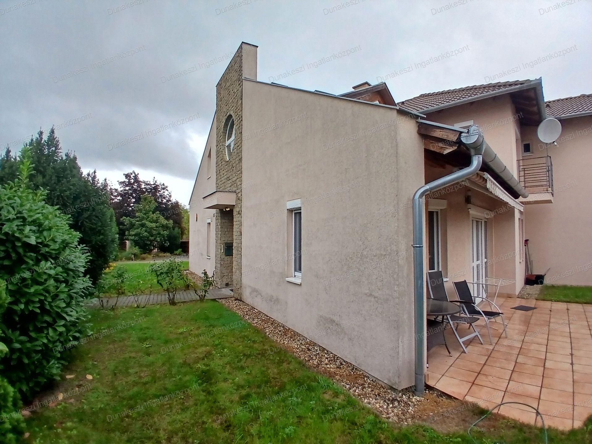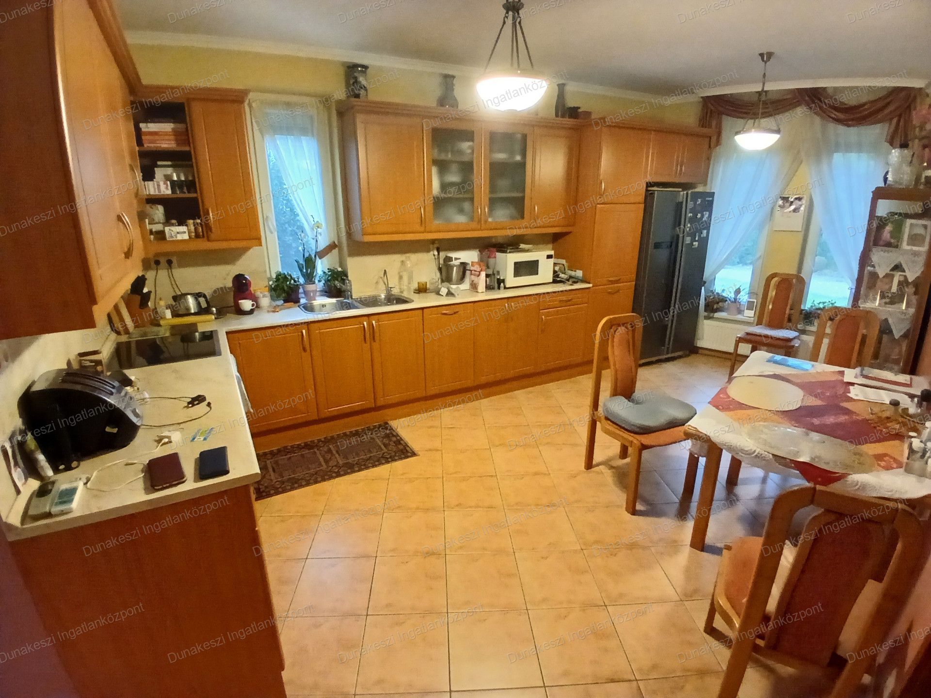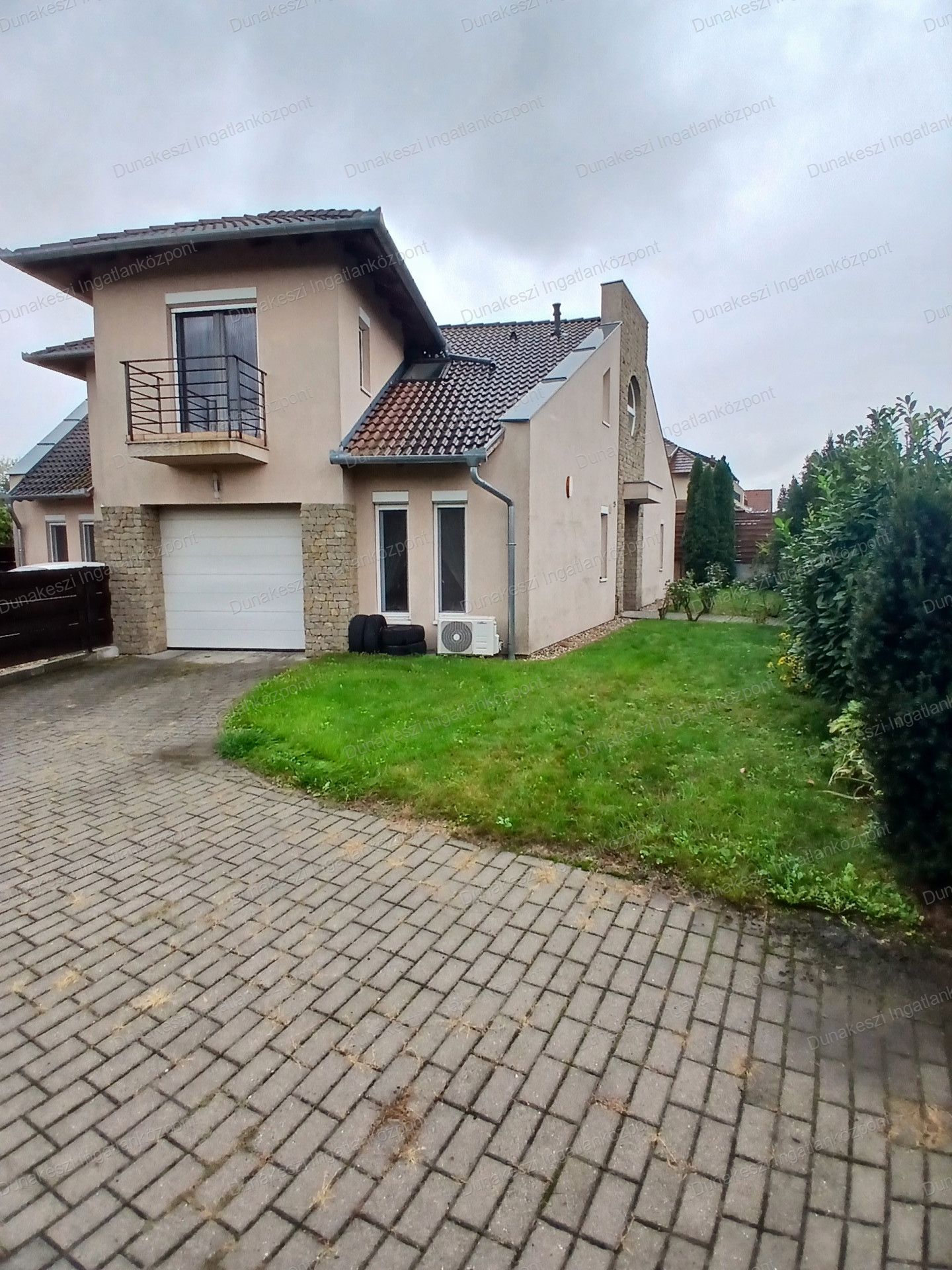 Dunakeszi egyik legjobb lakóparjában, kifogástalan állapotú, gyönyörű, gondozott, növényekkel beültetett, teljesen szeparált - külön utcából nyíló - saroktelken épült ikerház eladó. Kertben öntözőrendszer locsolómérővel, parkosított örökzöld növények, nagyméretű kerti tároló faház, garázs mellett több autó beállásra alkalmas térkövezett udvarrész. Nappaliból nagyméretű teraszon keresztül közvetlen kijárat az udvarra. Nagyon jó fekvésű, egész nap világos ingatlan. Hőszigetelt műanyag nyílászárók, minden ablakon MOTOROS REDŐNYÖK, SZÚNYOGHÁLÓ házban több helyen beépített gardrób szekrények, nagyméretű előszoba szekrény, fürdőszoba szekrény. Konyhabútor beépített SAMSUNG gépekkel (tűzhely, páraelszívó, mosogatógép) nagy méretű hűtőszekrény. Mindkét szinten hűtő/fűtő klíma.