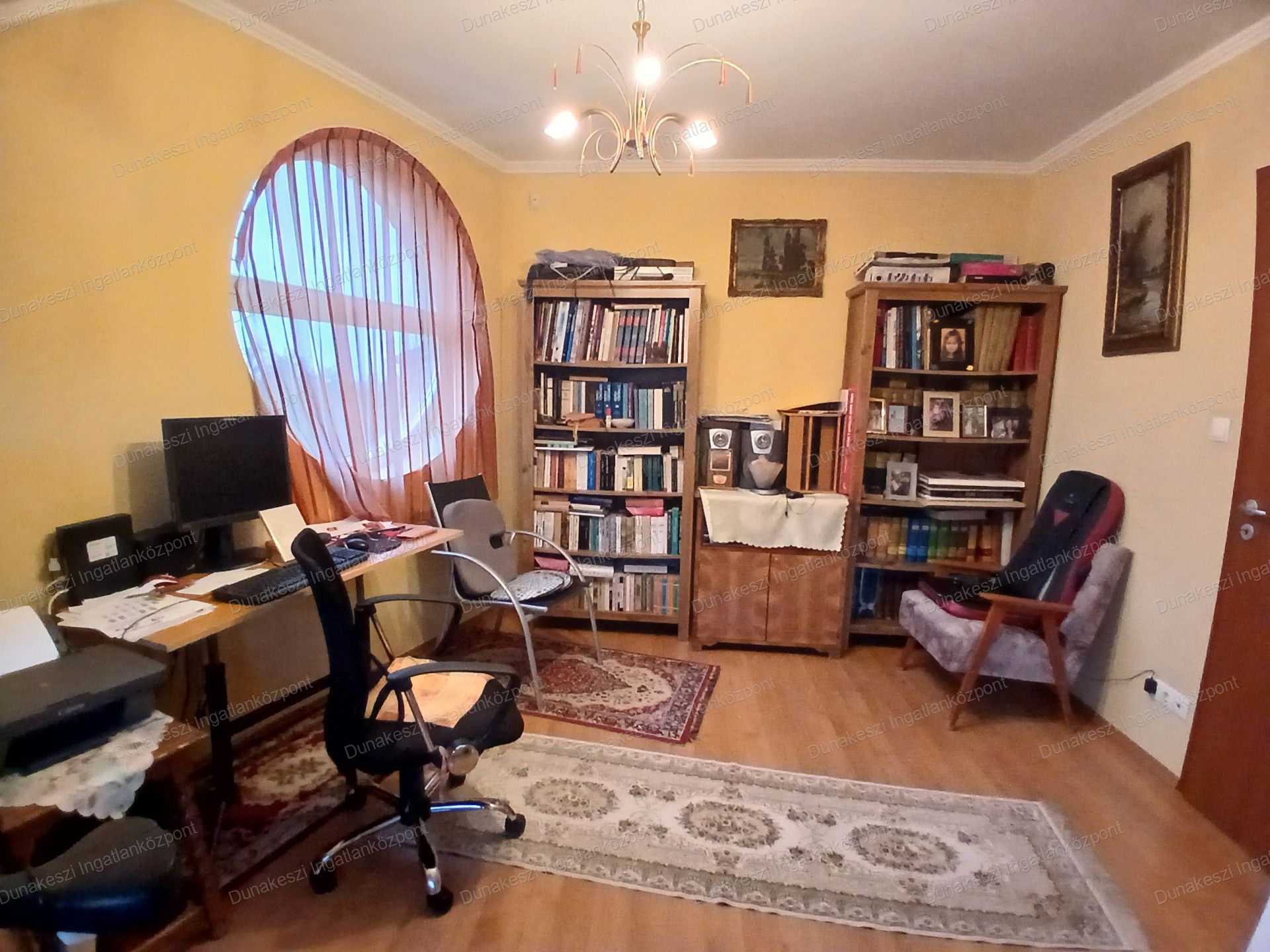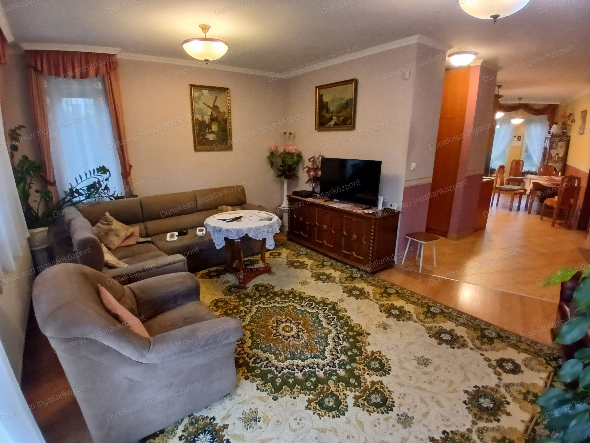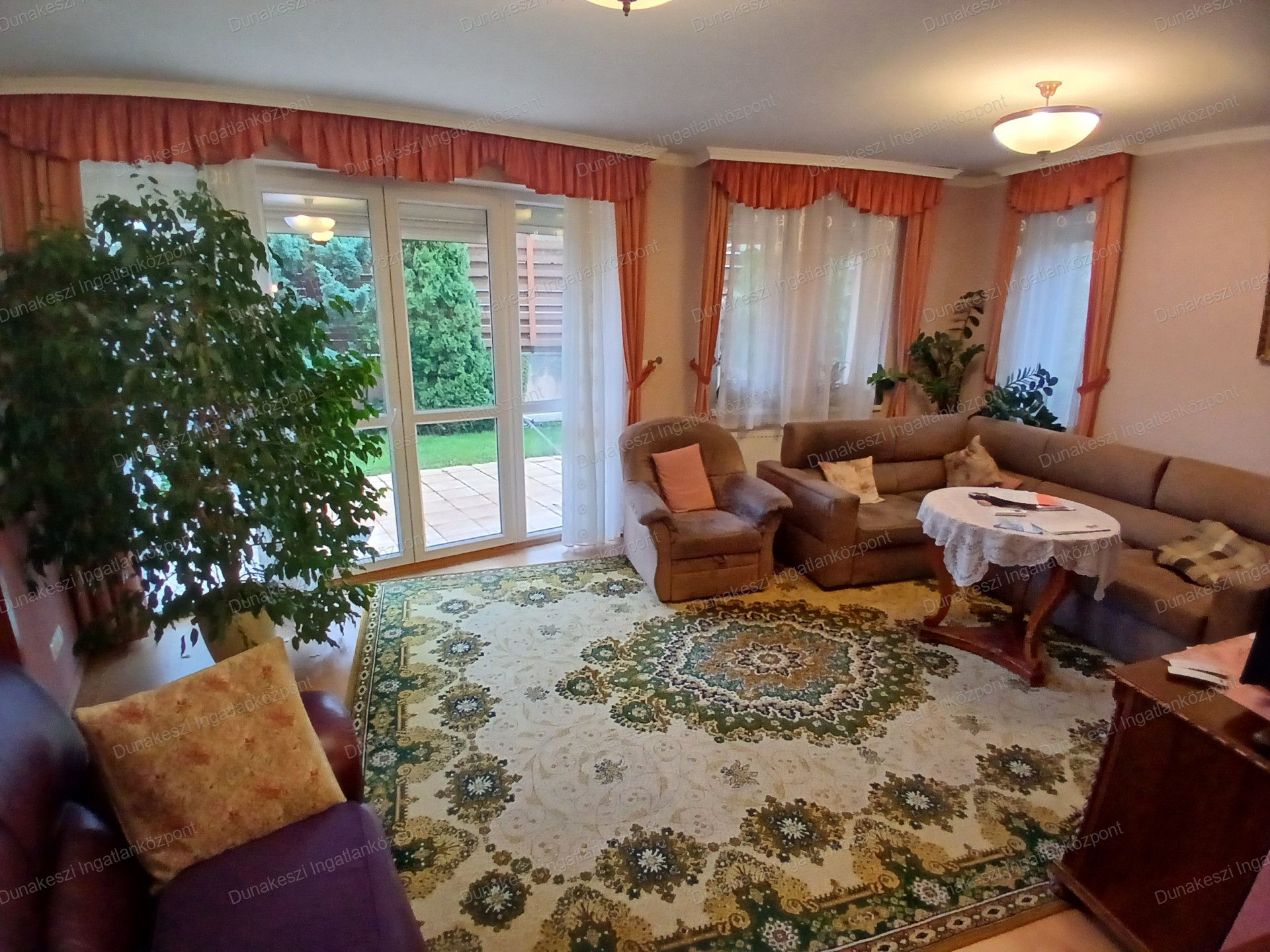 Dunakeszi egyik legjobb lakóparjában, kifogástalan állapotú, gyönyörű, gondozott, növényekkel beültetett, teljesen szeparált - külön utcából nyíló - saroktelken épült ikerház eladó. Kertben öntözőrendszer locsolómérővel, parkosított örökzöld növények, nagyméretű kerti tároló faház, garázs mellett több autó beállásra alkalmas térkövezett udvarrész. Nappaliból nagyméretű teraszon keresztül közvetlen kijárat az udvarra. Nagyon jó fekvésű, egész nap világos ingatlan. Hőszigetelt műanyag nyílászárók, minden ablakon MOTOROS REDŐNYÖK, SZÚNYOGHÁLÓ házban több helyen beépített gardrób szekrények, nagyméretű előszoba szekrény, fürdőszoba szekrény. Konyhabútor beépített SAMSUNG gépekkel (tűzhely, páraelszívó, mosogatógép) nagy méretű hűtőszekrény. Mindkét szinten hűtő/fűtő klíma.