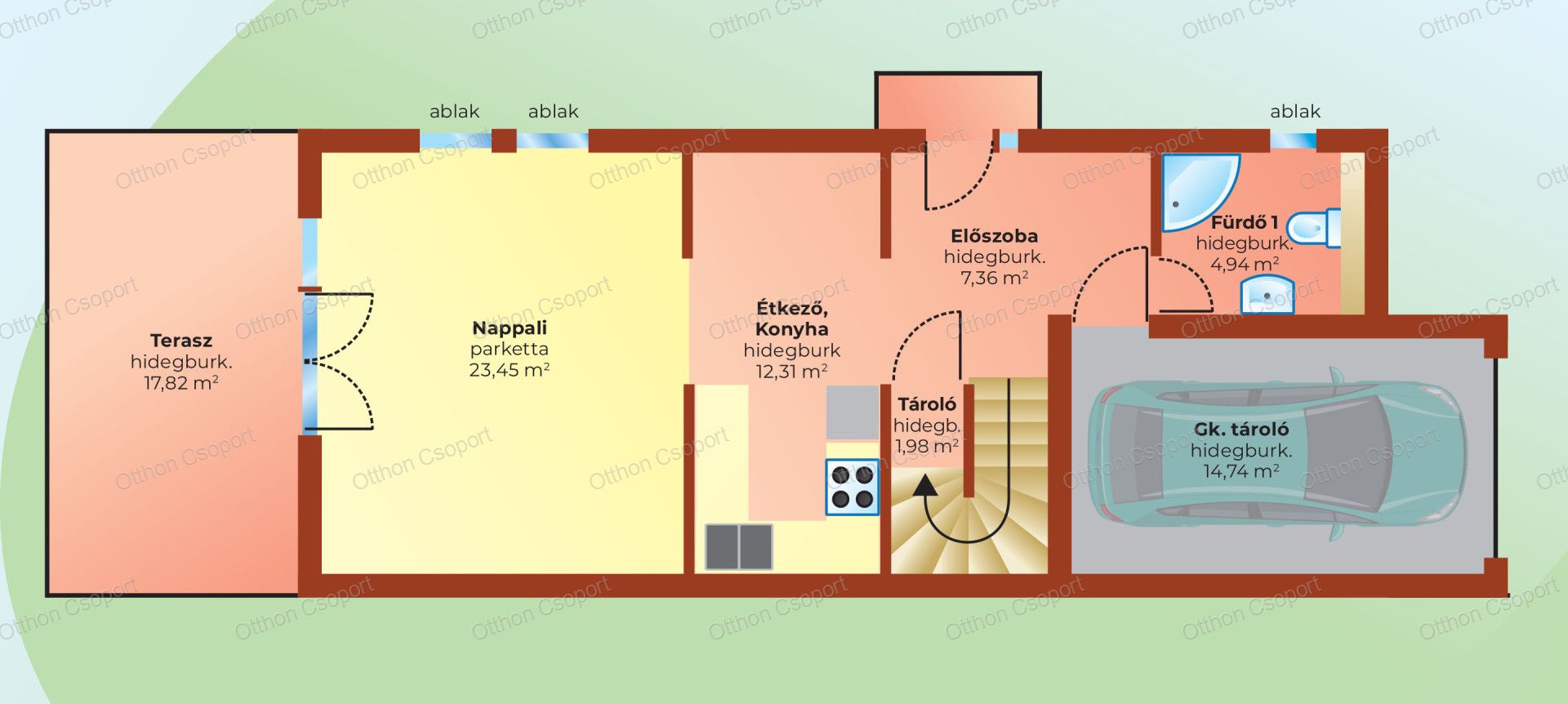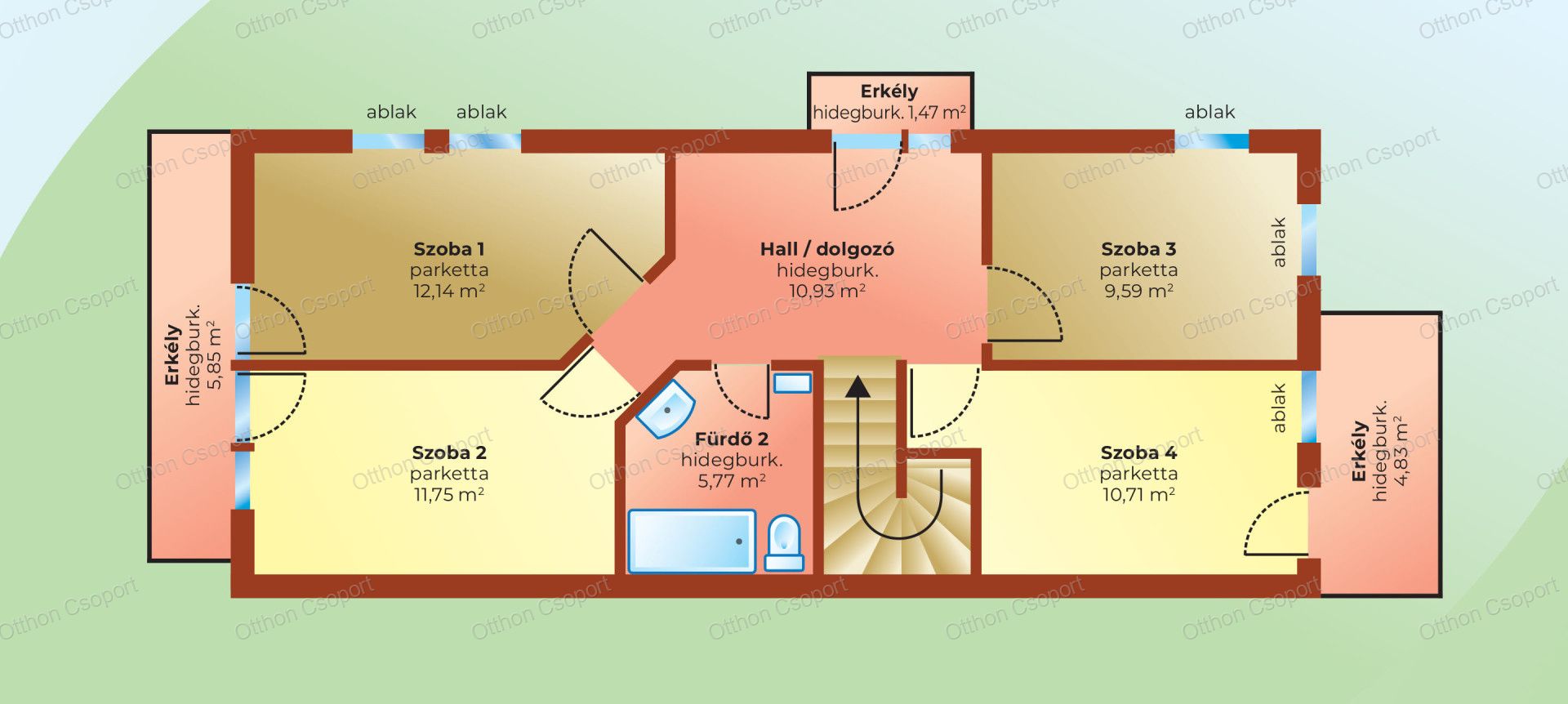 Ezen kívül a földszinten és az emeleten is 1-1 db Hitachi hűtő-fűtő klíma növeli a komfortot.