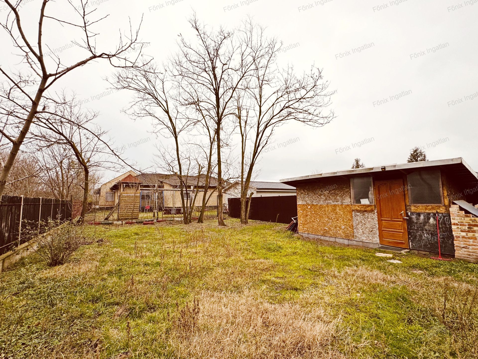 A telek szabályos formájú, körbekerített, az előkert felől garázs, fedett autóbeálló, udvari parkolási lehetőség, a hátsó kertben tároló áll rendelkezésre.