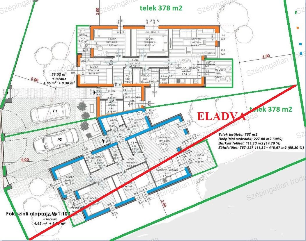 A Szépingatlan Iroda friss kínálatában, Nagycenken, csendes családi házas övezetben, 378 m2-es telken, új építésű ikerház tervei láthatók. Az épületek nem érnek össze, nincs közös fal, egymástól az autóbeállók választják el a két lakóházat. A közöttük kialakult terület az autók tárolására ad lehetőséget. A lakótér alapterülete 90 m2-es, földszintes, két terasz, tágas, kertkapcsolatos nappali + étkezőkonyha, 3 hálószoba, fürdőszoba, külön WC és egy gépészeti helyiség található. Tégla építésű, 6 légkamrás, fehér műanyag, 3 rétegű fokozott hőszigetelt üvegezésű külső nyílászárók kerülnek beépítésre. A fűtés energia takarékos levegő hőszivattyús rendszerrel megoldott, a lakótérben padlófűtés. A házhoz tartozó kert csupán a szomszédos házakhoz kapcsolódó kertekkel határos, így kiváló lehetőség a pihenésre. Az ingatlan bejárata térkővel burkolt udvaron át közelíthető meg. Az autók tárolása az épület mellett kialakított, térkővel burkolt beállókban megoldott, lakásonként 1 db. Ára: 89.5 mFt, mely tartalmazz a ház kulcsrakész állapotát telekkel együtt. Tervezett átadás 2025 év vége. Érd.: + 3630 520 6055, [email protected]