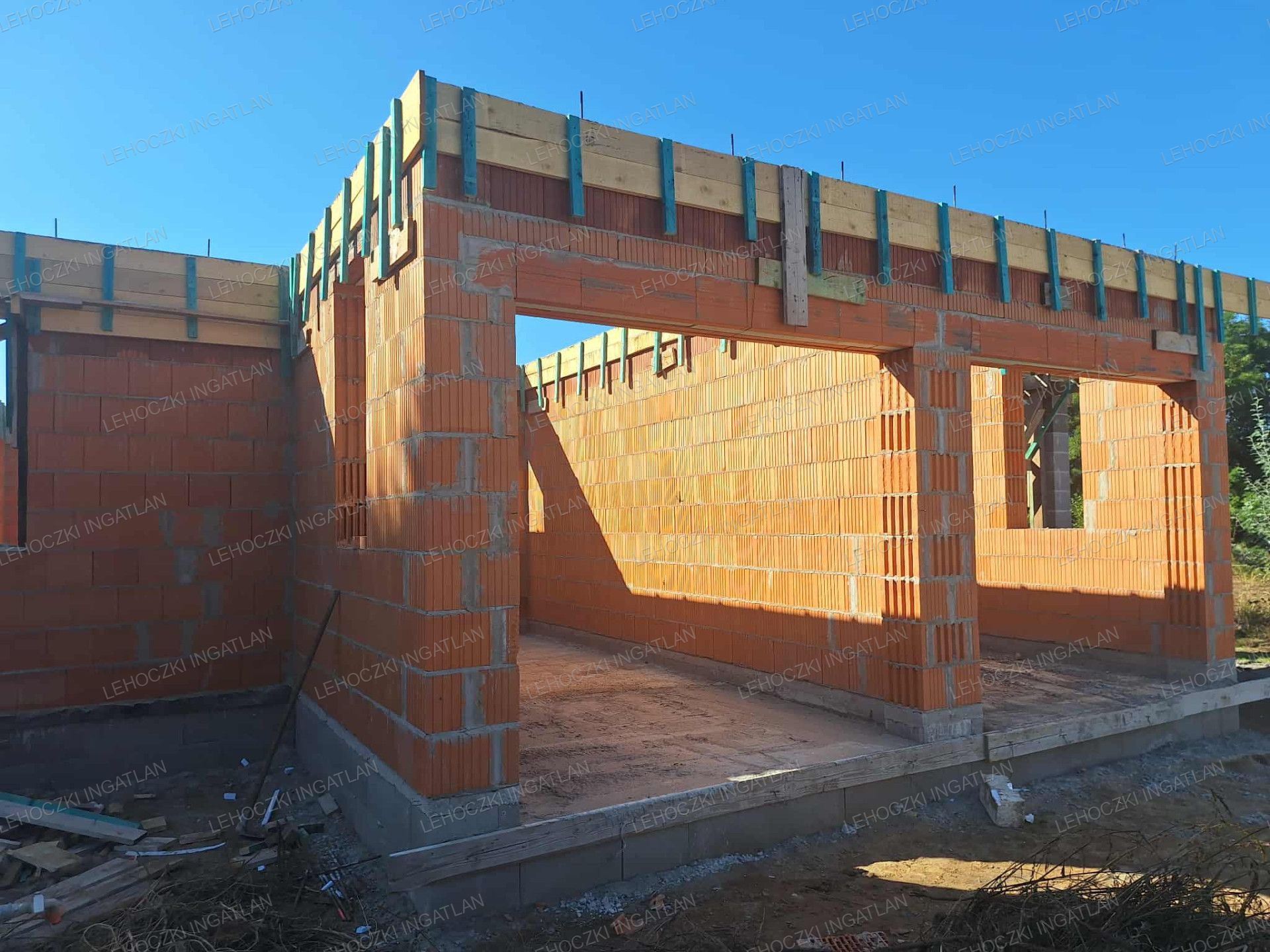 Felmenő falszerkezet: 30 cm vastag, nútféderes Porotherm 30 NF falazóblokk,