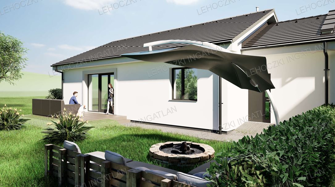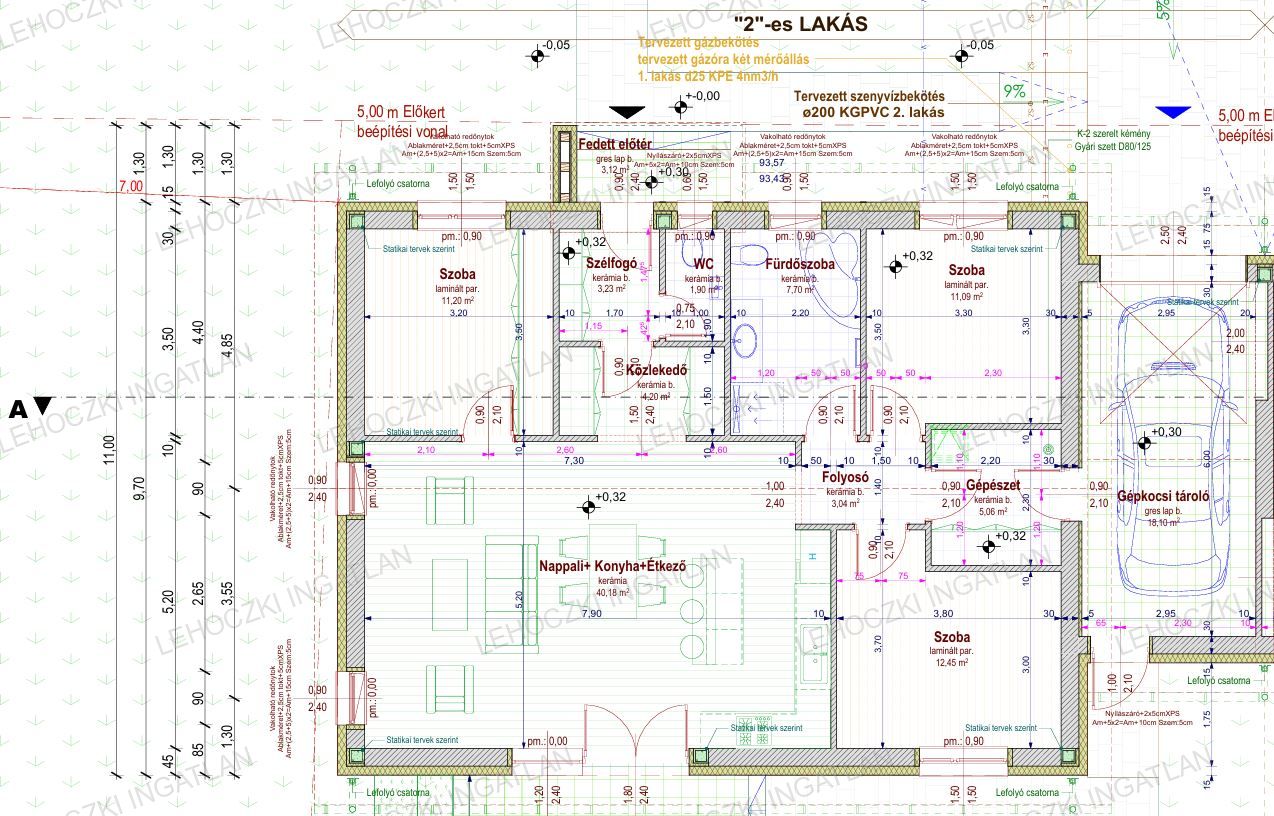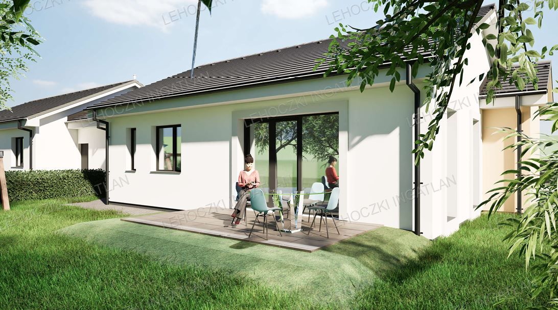 Helységei: előtér, nappali - amerikai konyha, 3 külön nyíló szoba, fürdő wc-vel, külön wc, gépészeti helyiség, közlekedő, garázs, 14 nm-es nyitott terasz,