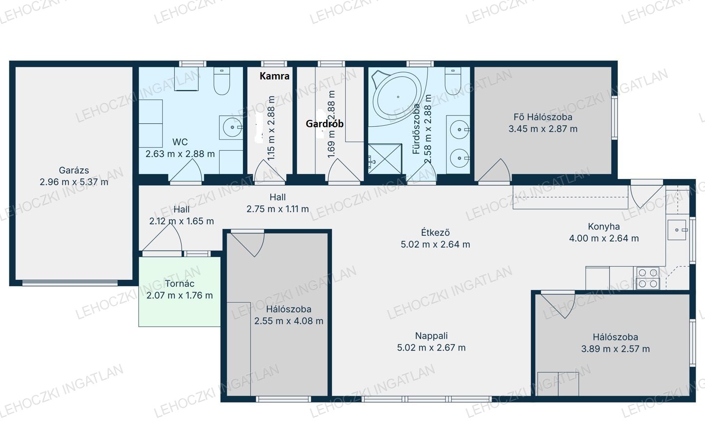 - A helyiségek padlóburkolata kerámia és laminált padló,