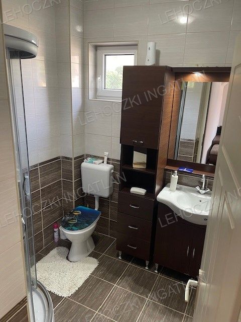 Az emeleten a közlekedőből 3 külön bejáratú szoba, fürdőszoba és külön wc nyílik. 1 szoba beépített hálószoba berendezéssel felszerelt. 1 szoba kondi teremként berendezett (a kondi eszközöket nem tartalmazza a lakás eladási ára). A közlekedő egyik hosszanti oldala teljes terjedelmében gardrób szekrénnyel borított. A fürdőszoba Ravak káddal és mosdóval felszerelt, fallal leválasztott részében mosókonyha van kialakítva.