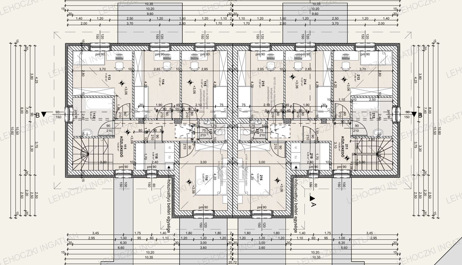 - Teherhordó falazat: Porotherm 30-as tégla falazat, 15 cm-es grafitos hőszigeteléssel ellátva,