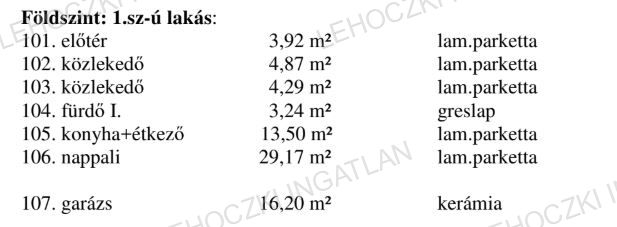 - Burkolatok: a helyiségek padlóburkolata kerámia és laminált parketta.