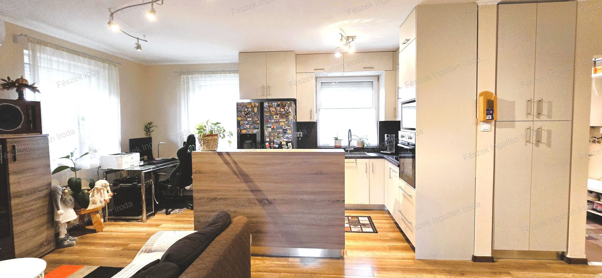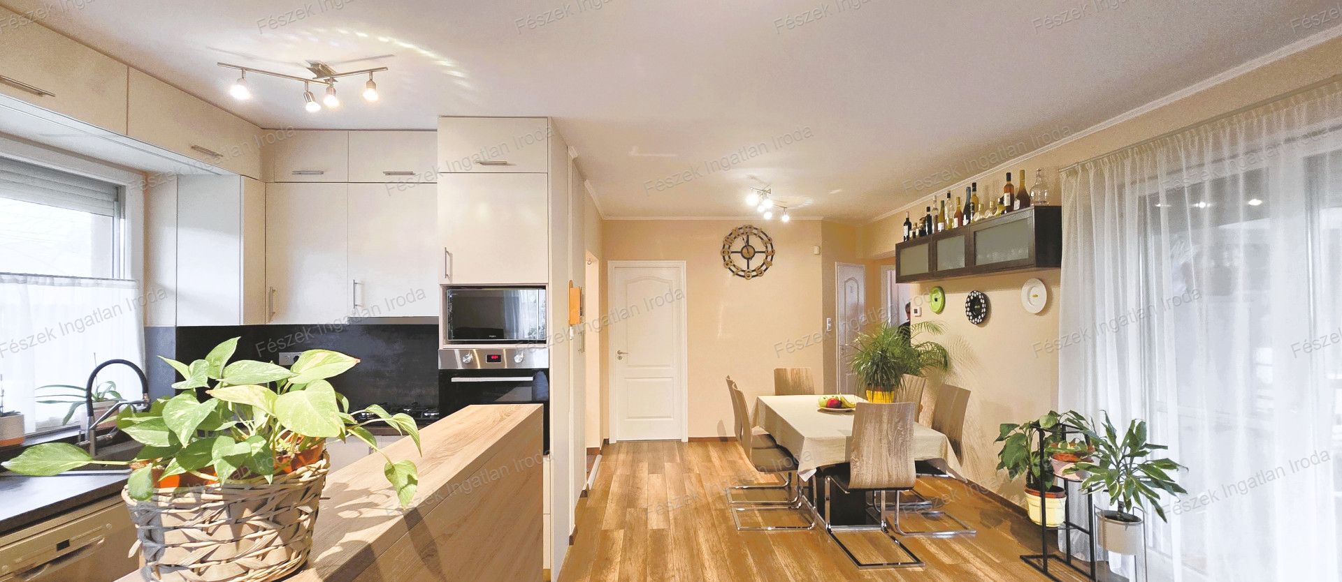 Központi része a háznak a nappali-étkező–konyha ( 38 m2 ), vadonatúj konyhabútorral, mely a vételár részét képezi. Három hálószoba nyílik a közlekedőből (8,1; 9,6 és 10,7 m2)