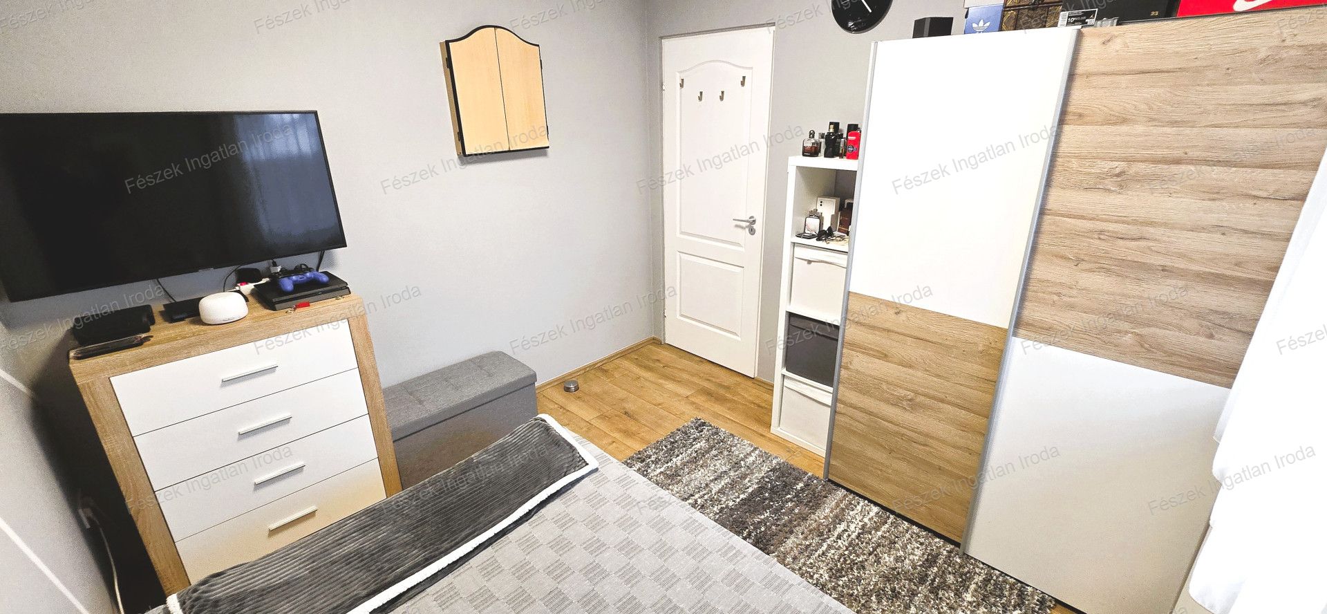 A nappali, konyha és a szobák burkolata laminált padló, fürdőszoba, wc és az előtér járólappal burkolt.