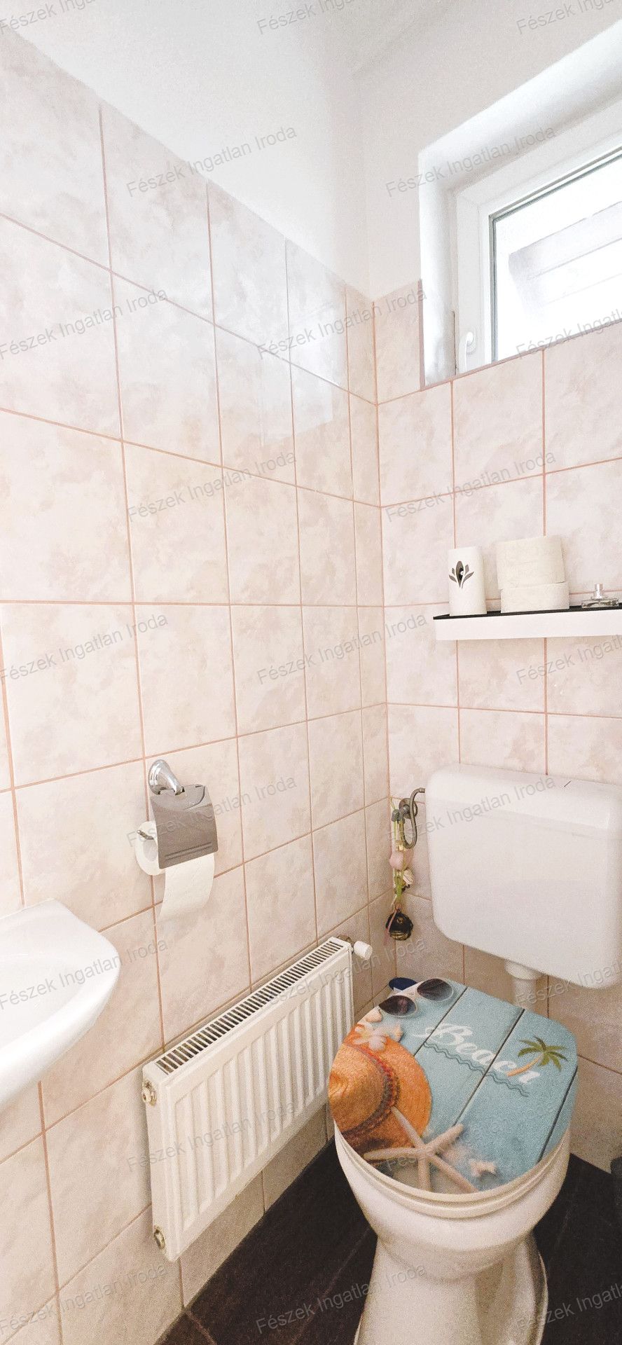 Fürdőszoba káddal, mosdókagylóval, wc -vel felszerelt (6 m2), valamint a közlekedőből nyílik egy külön helységben található wc kézmosóval