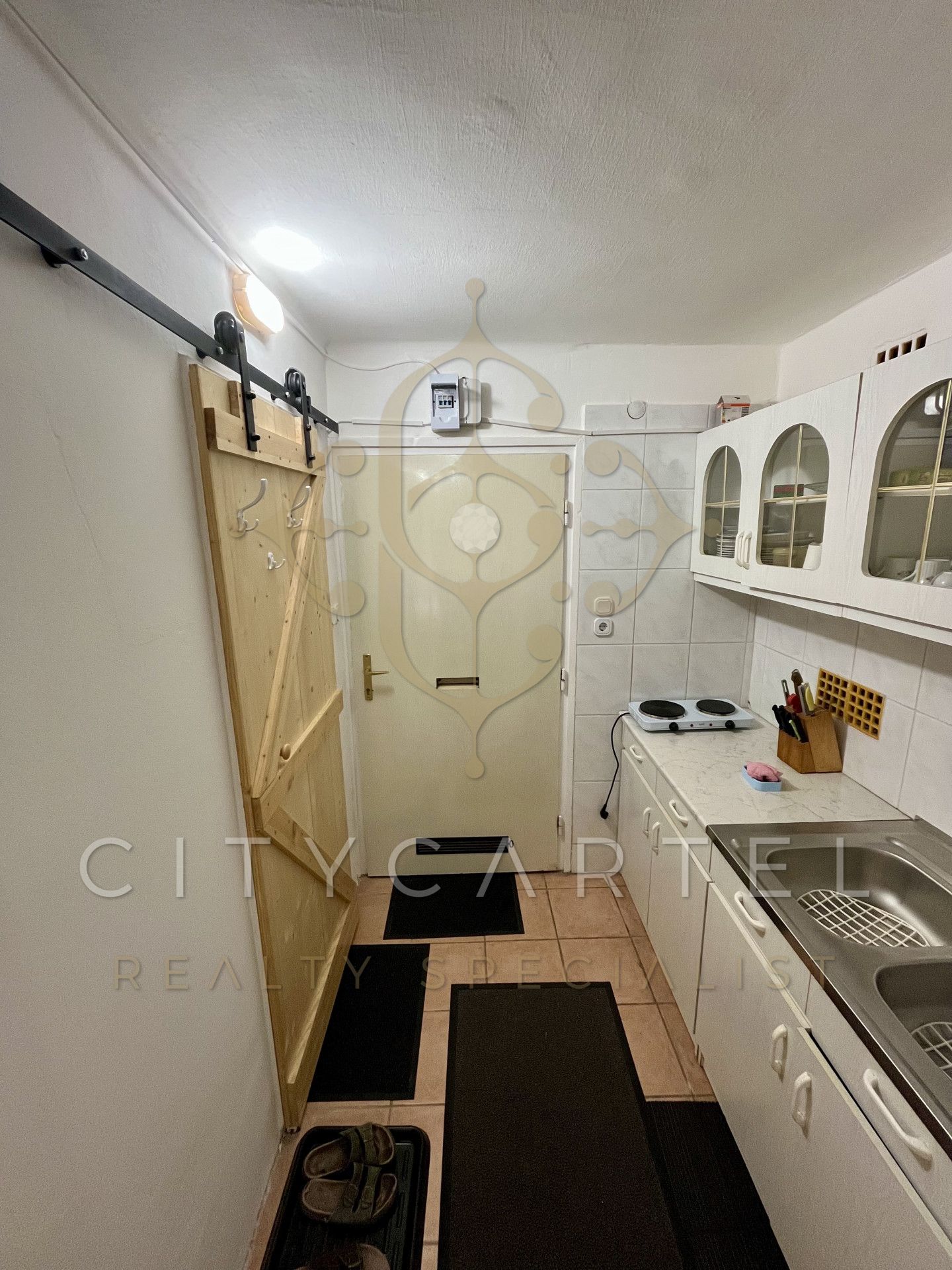 Az ingatlanban egy konyhafülke, fürdőszoba-WC, egy tágas szoba és az erkély beépítésével létrehozott étkező került kialakításra.
