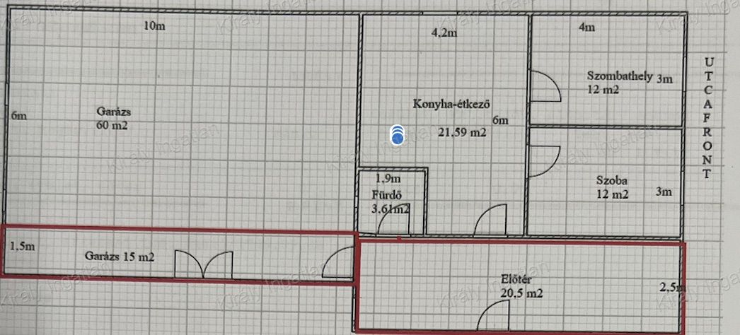 Közművek: villany (ipari áram is), víz, gáz bevezetve
