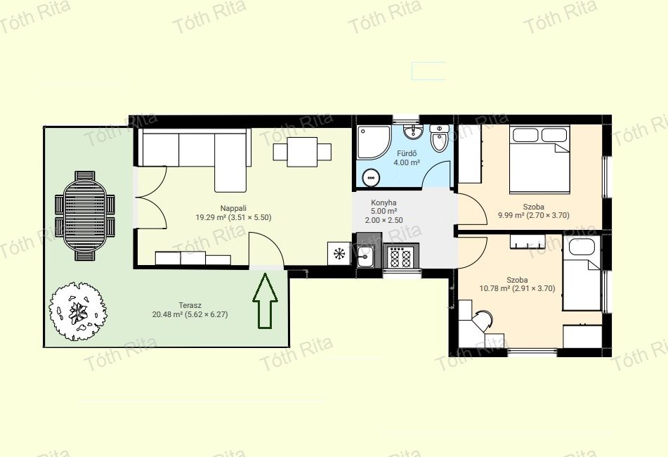 - nappali + 2 szobás elrendezés