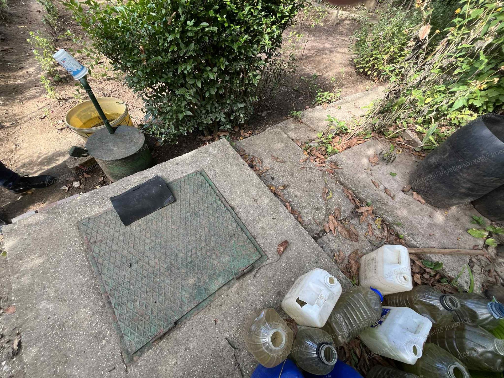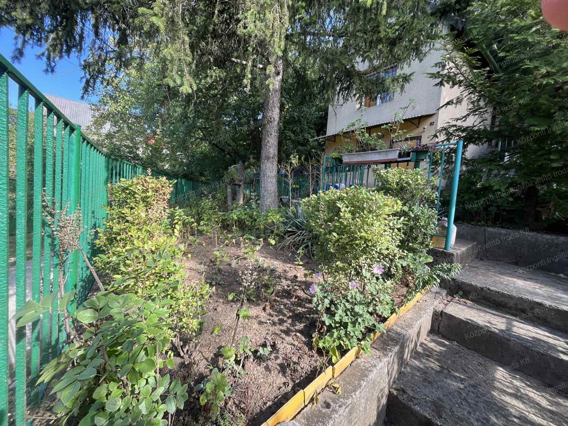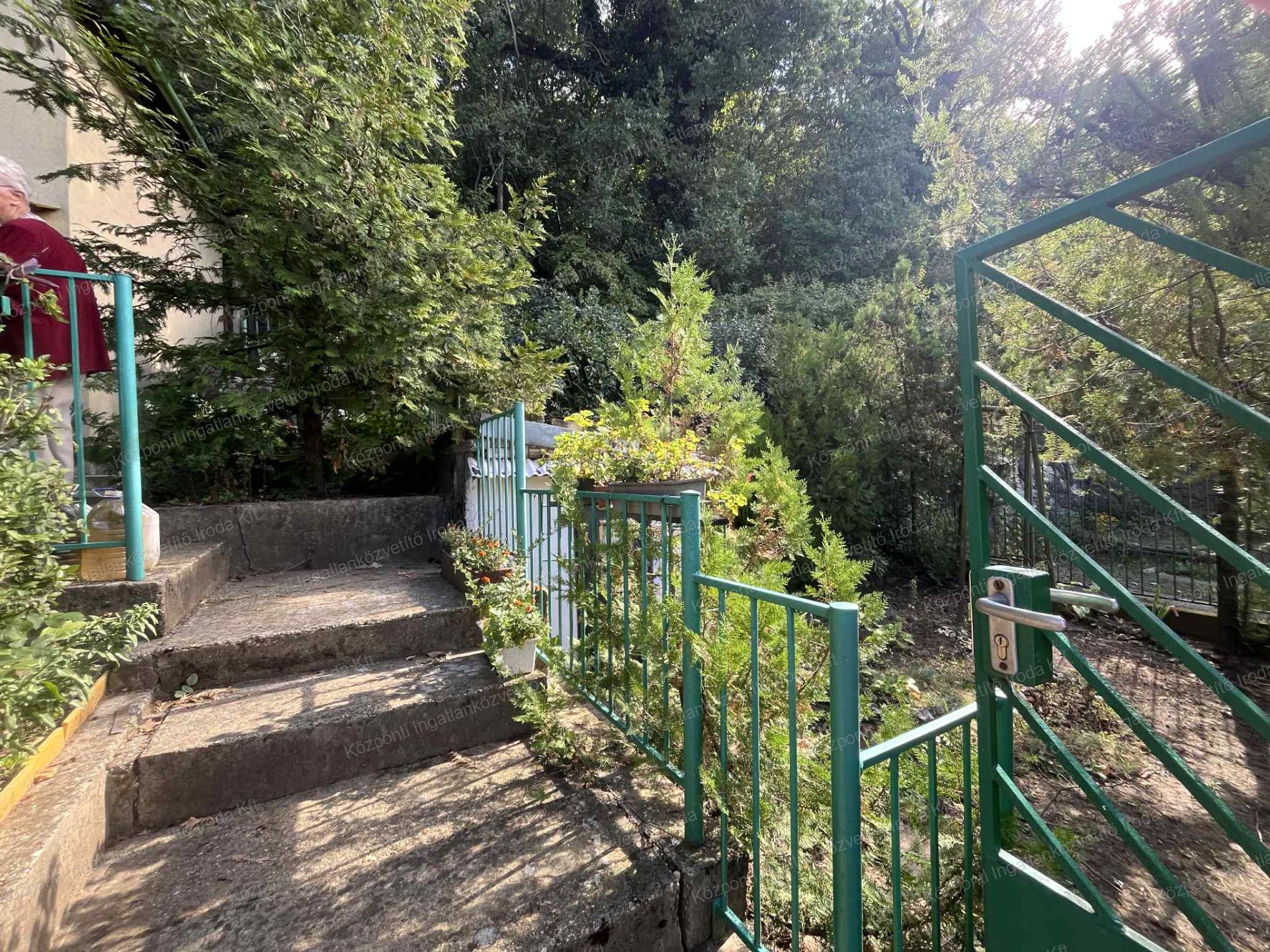 Az alsó kertből kisajátításra került 70 m2-es terület az autópálya bővítése céljából, így az 493 m2. Itt több gyümölcsfa és szőlő is található, 2 db kerti csap áll rendelkezésre a növények gondozásához. A mindennapi szükségletek elvégzéséhez egy kerti WC is rendelkezésre áll. A megtermelt zöldégek, gyümölcsök a 6 m2-es 150 cm belmagasságú pincében is elhelyezhetők télire. A telek végén pár éven belül zajzáró fal épül.