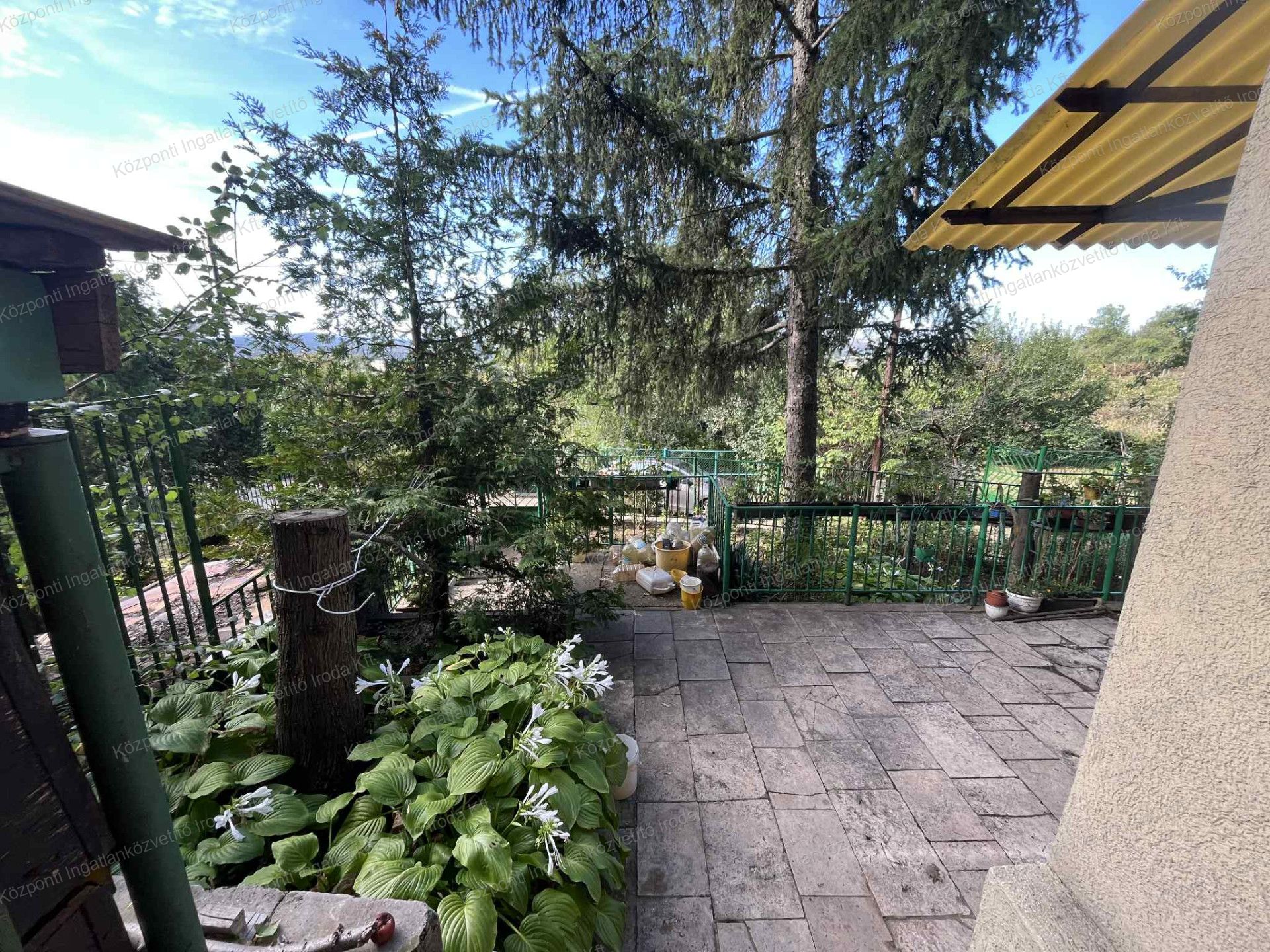 Az ingatlan 2 külön megközelíthető, egymással szembeni telekből áll, összesen 644 nm-es. A151 m2-es telken egy panel szerkezetű 2 szintes (24-24 m2) házikó áll, melynek alsó szintjén konyha és kamra található, ahonnan egy terasz nyílik, a felső szintjén előszoba, szoba és WC kapott helyet. A tetőtér tárolóként funkcionál, a ház mellett egy könnyűszerkezetes fa tároló található. Az ingatlan vezetékes vízzel, emésztővel ellátott, villanyórával felszerelt (20 amper). A kémény megépült, a fűtés jelenleg kályhával biztosított. Az épület 5 cm-es homlokzati szigetelést kapott.