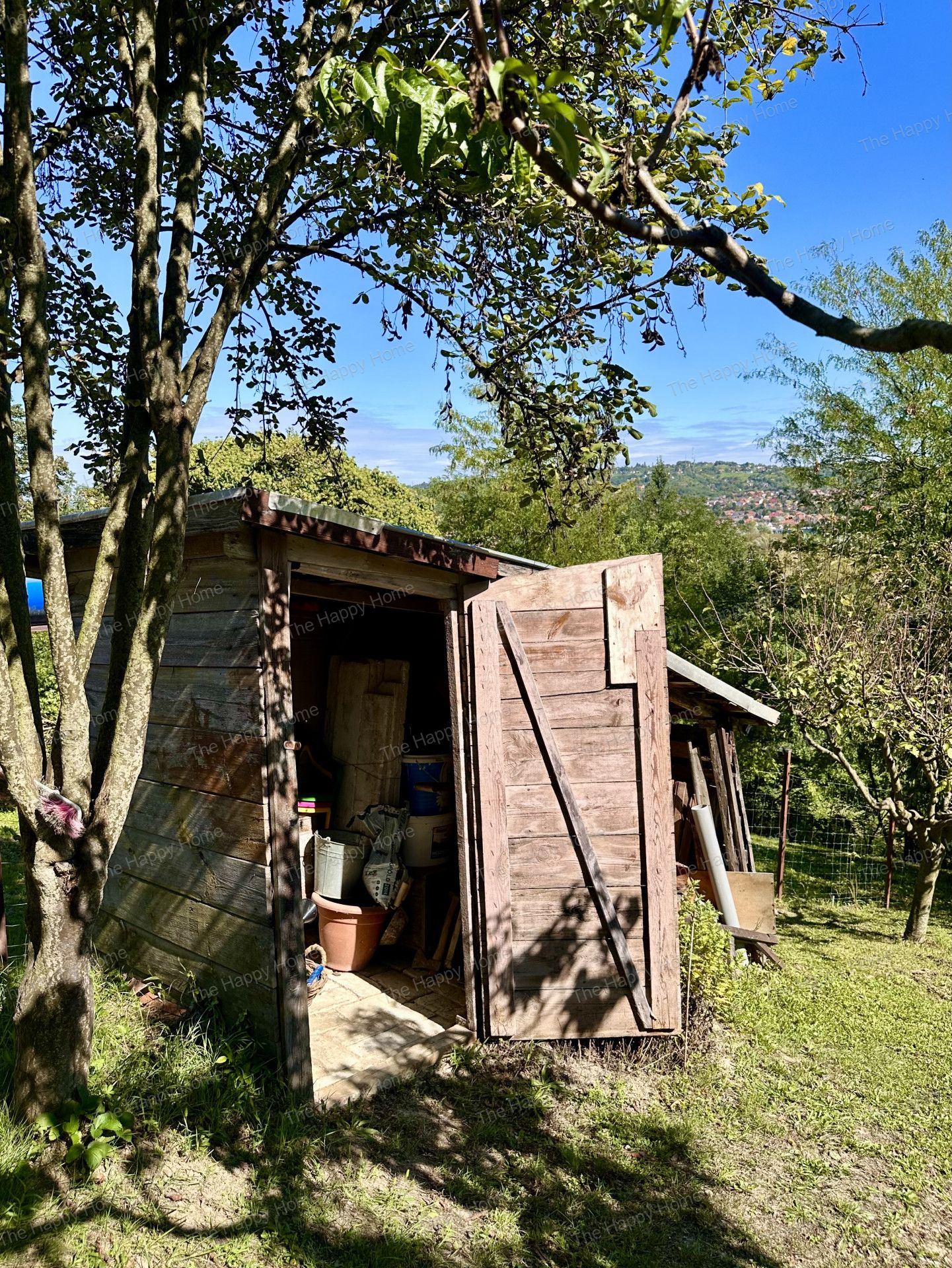 A kezelhető méretű, 586 nm-es telek valódi kincs: termő gyümölcsfákkal beültetve. Lépcsőzetes kialakításának köszönhetően praktikus, jól tagolt és könnyen gondozható kert vár rád. Egy kinti zuhanyzó gondoskodik a felfrissülésről a nyári napokon, a fatároló pedig a téli esték hangulatát idéző tűzifa helye lehet.