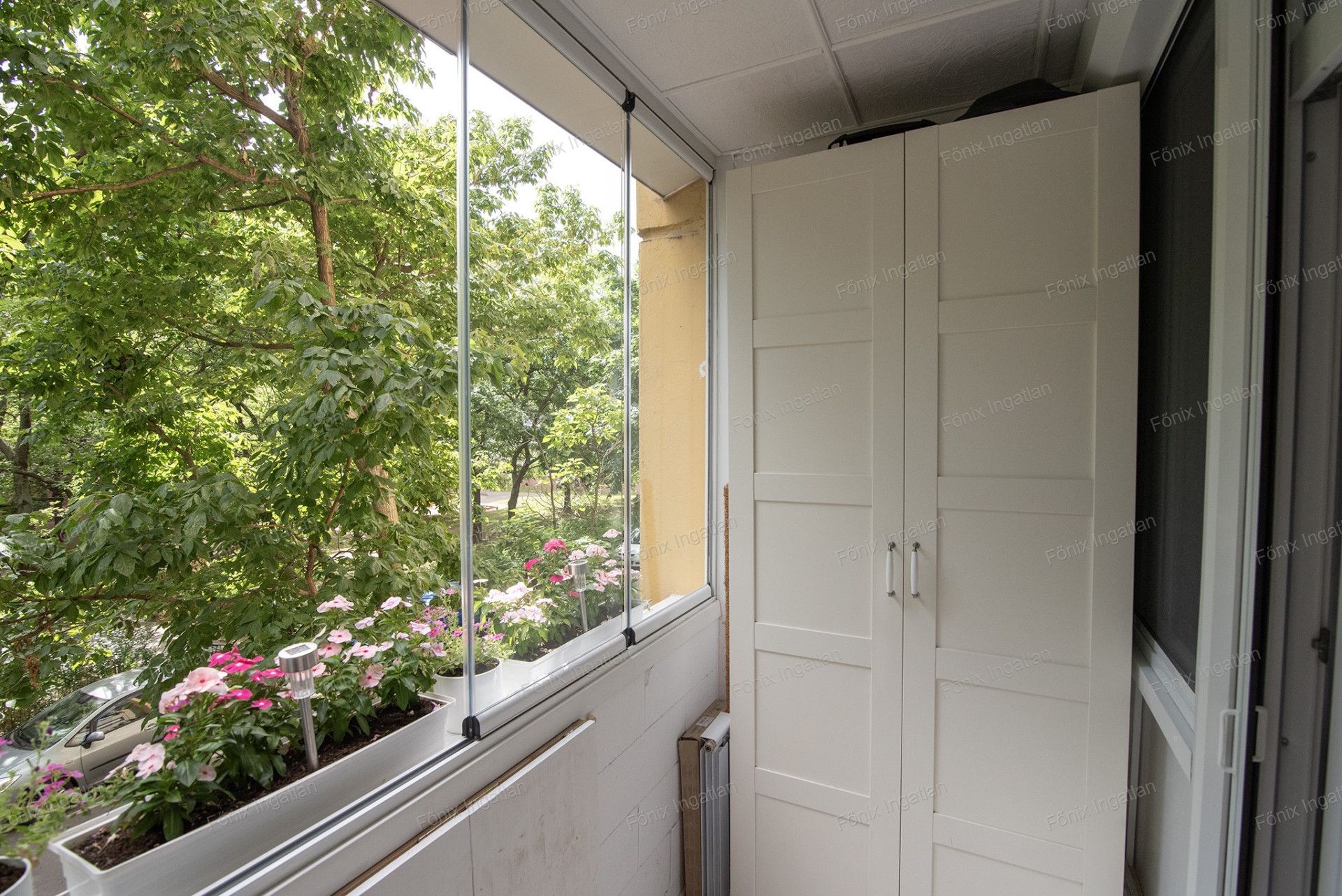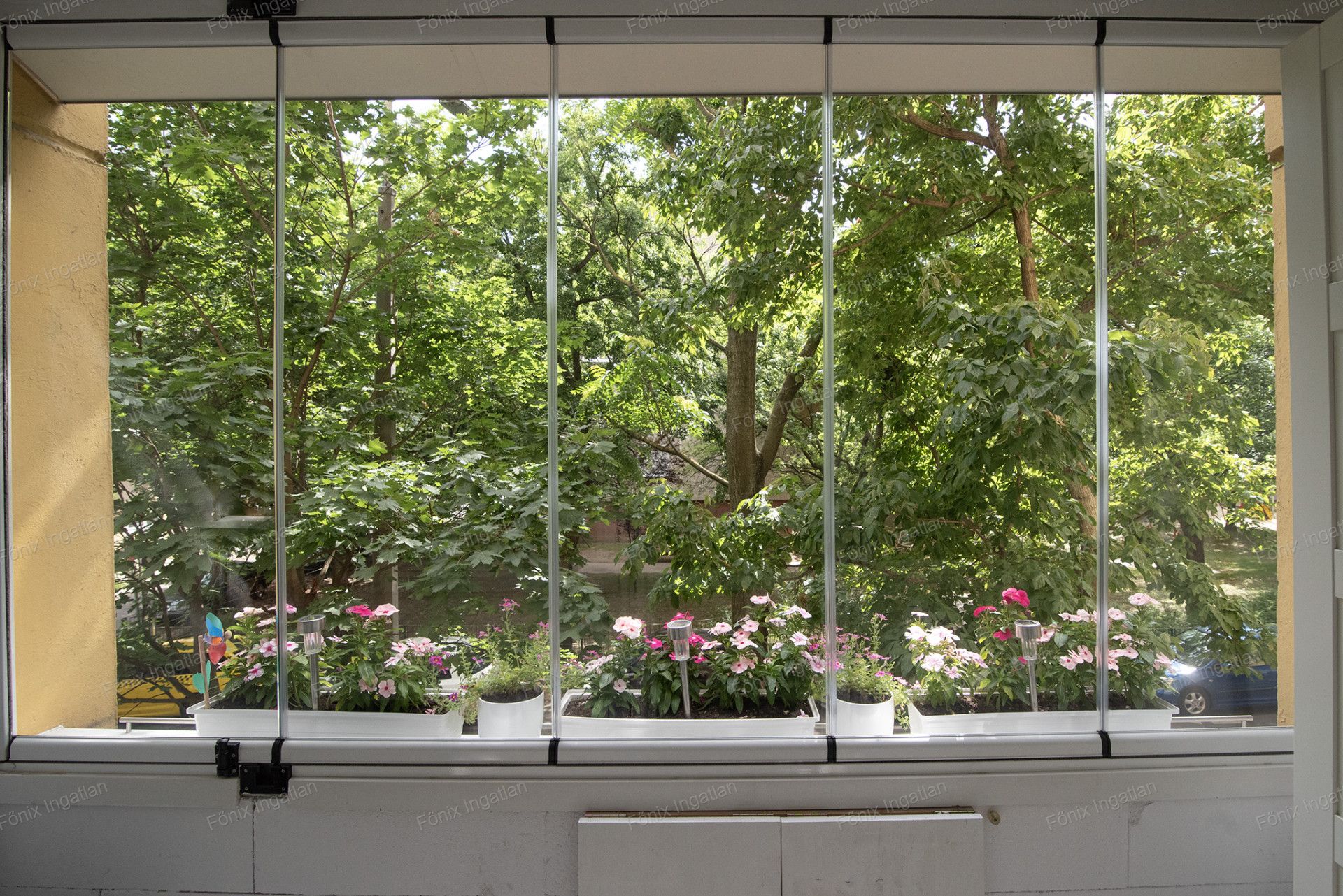 - 4m2-es beépített, hőszigetelt , parkettázott, LAPOZHATÓ ÜVEGABLAKOS TERASZ.