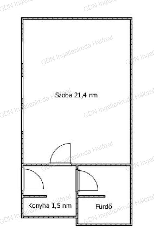 Elrendezés: 1 szoba, főzőfülke, fürdőszoba, előszoba