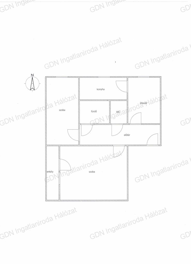 A lakásban 2 szoba, étkező, konyha, fürdő, WC és előszoba található, amelyek kényelmes életteret biztosítanak.