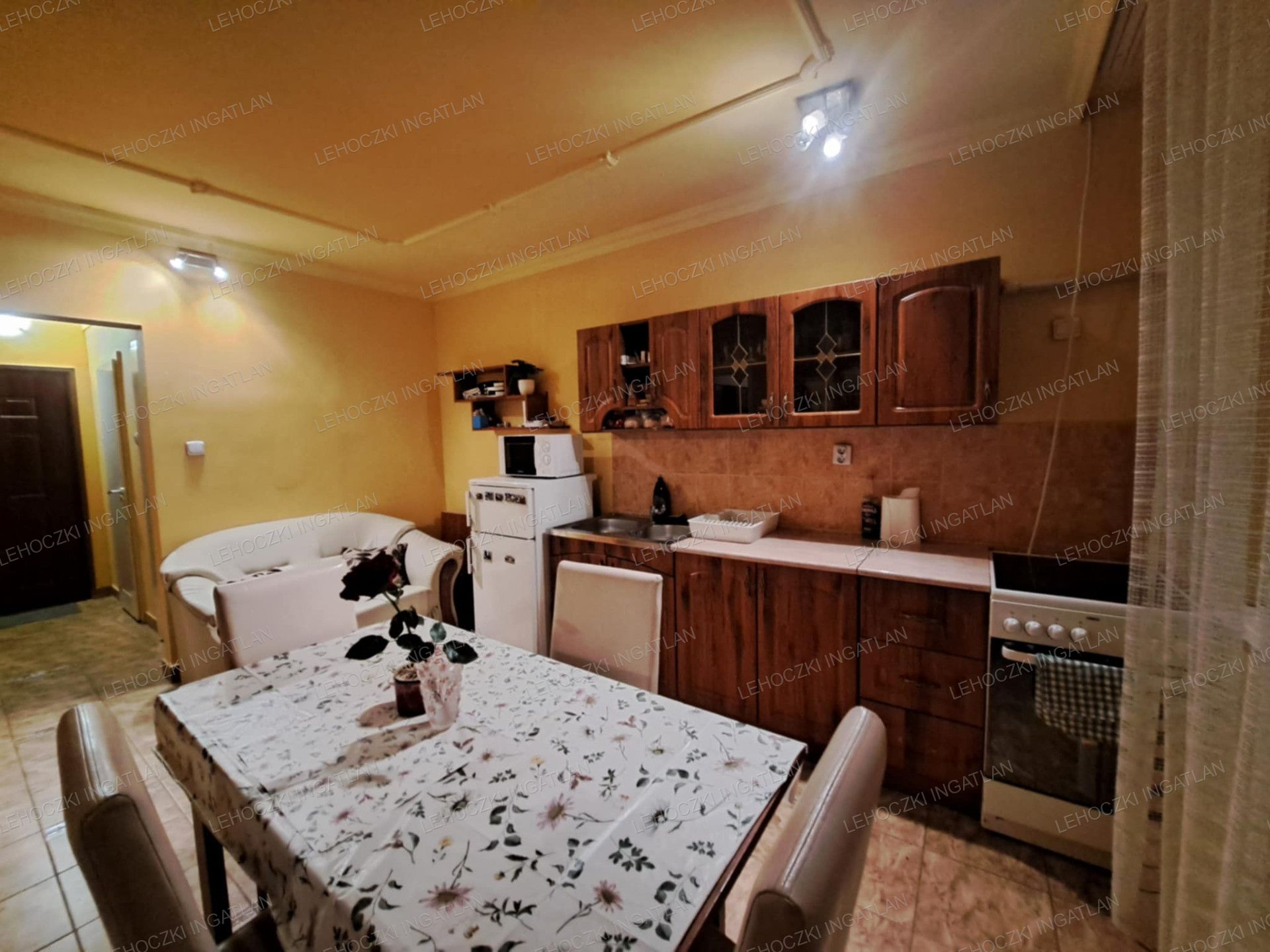 Az előtérből nyílik a fűrdoszoba, a wc és a konyha-étkező. A konyha-étkező tágas, a lakás központi része, innen nyilik a két szoba.