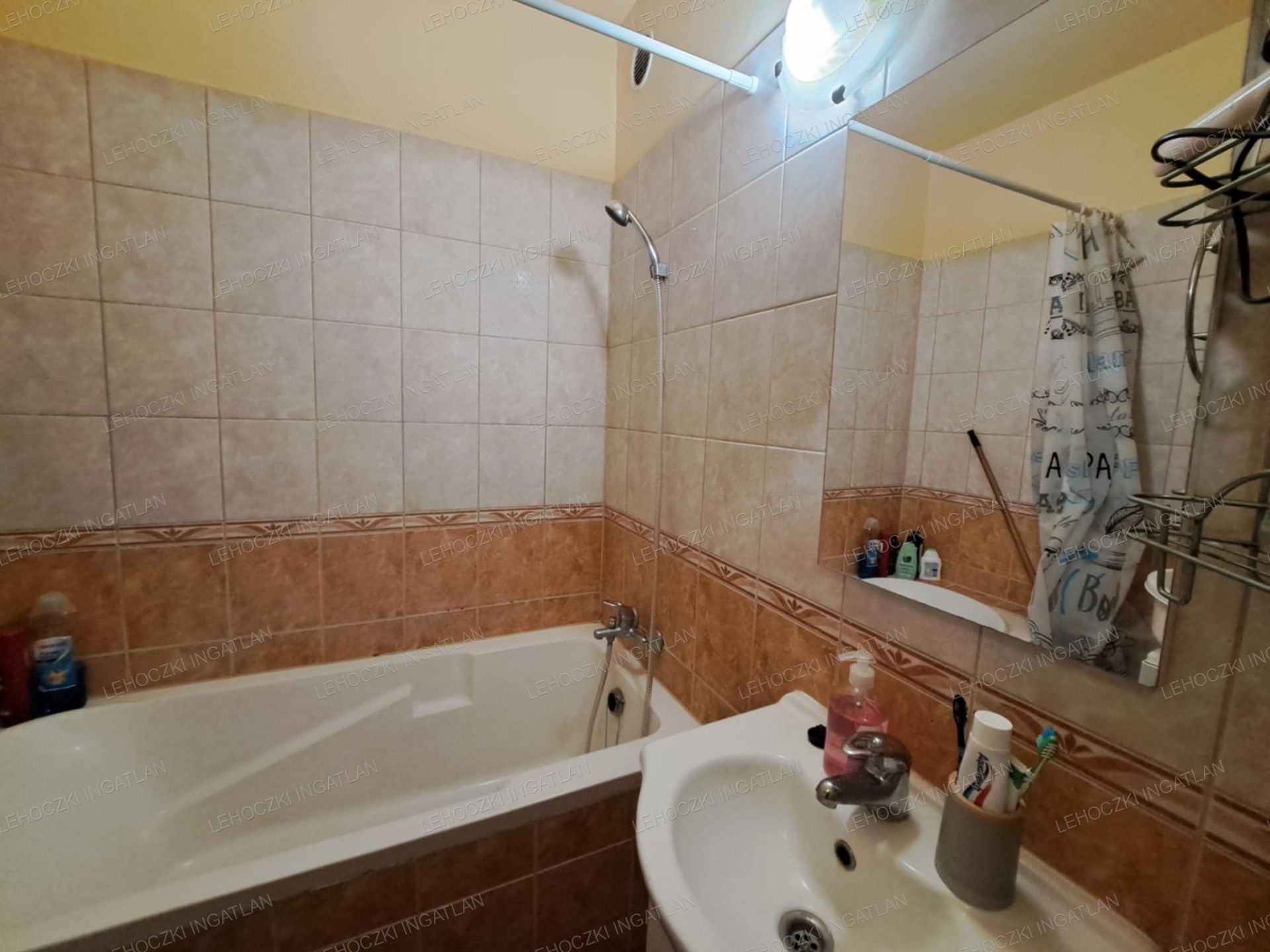 A fűdőszoba teljes felújítása megtörtént (falicsempe, járólap, kád és mosdó). A wc külön helyiségben, szintén felújítva.