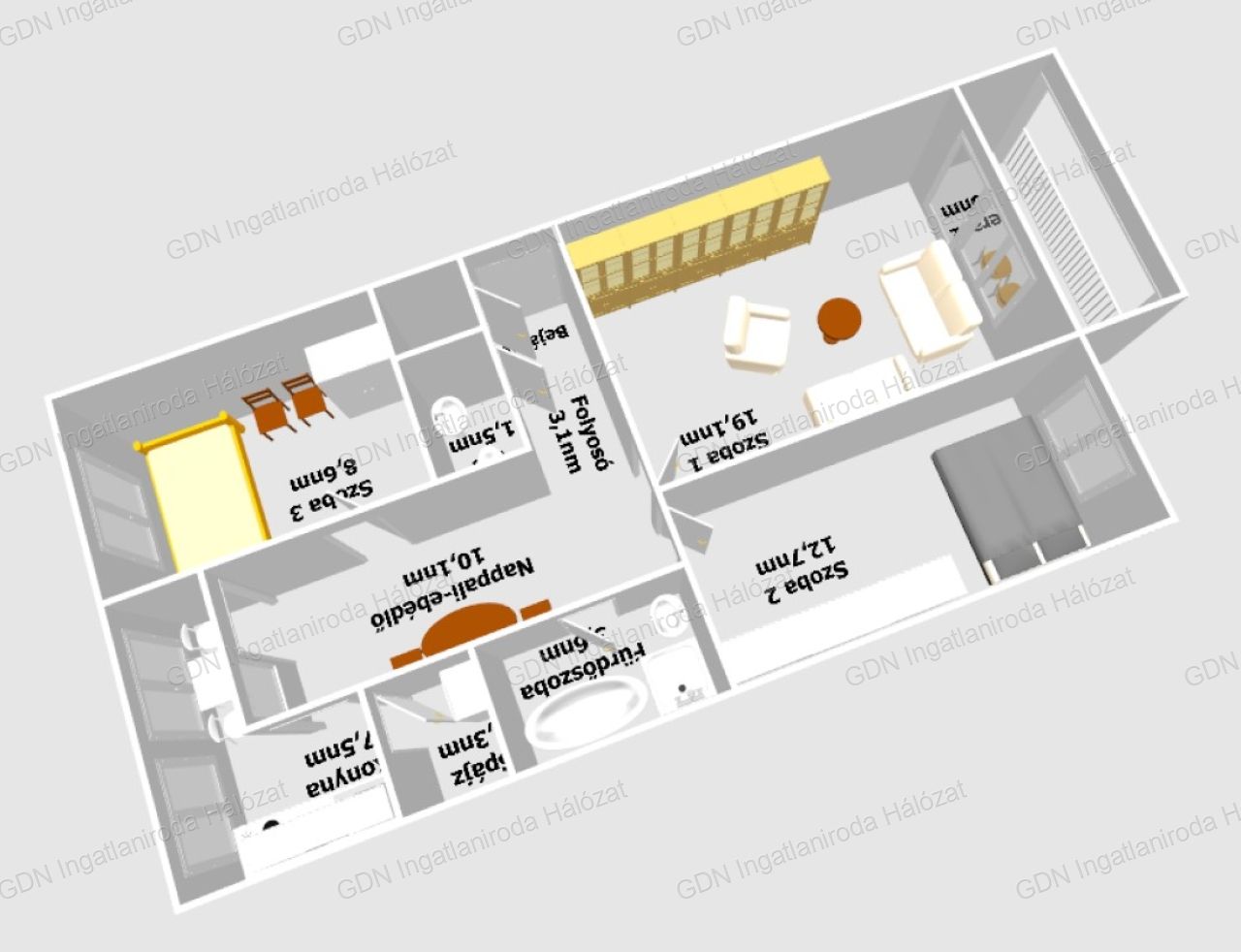 Szobák száma | 2 szoba + 1 félszoba |