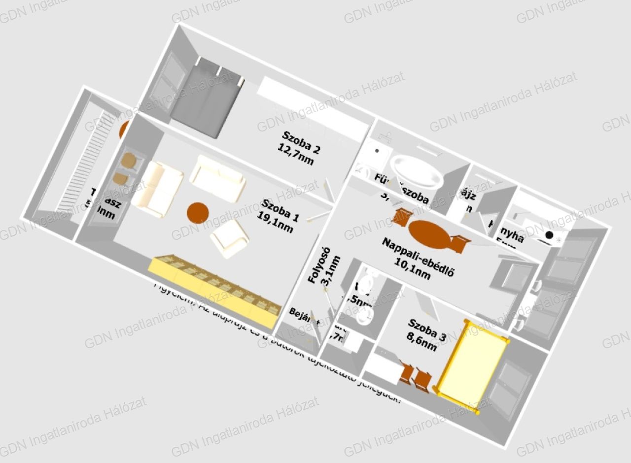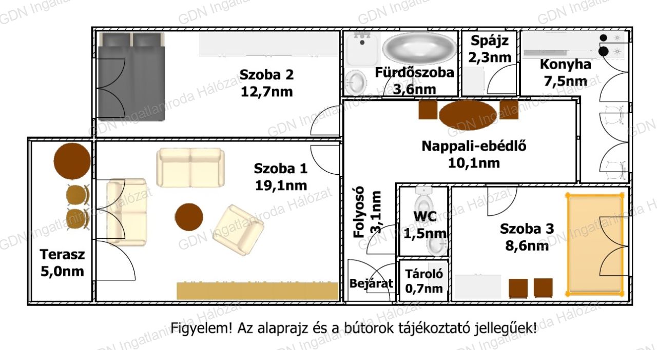 A lakás hasznos alapterülete 72nm, melyben található: