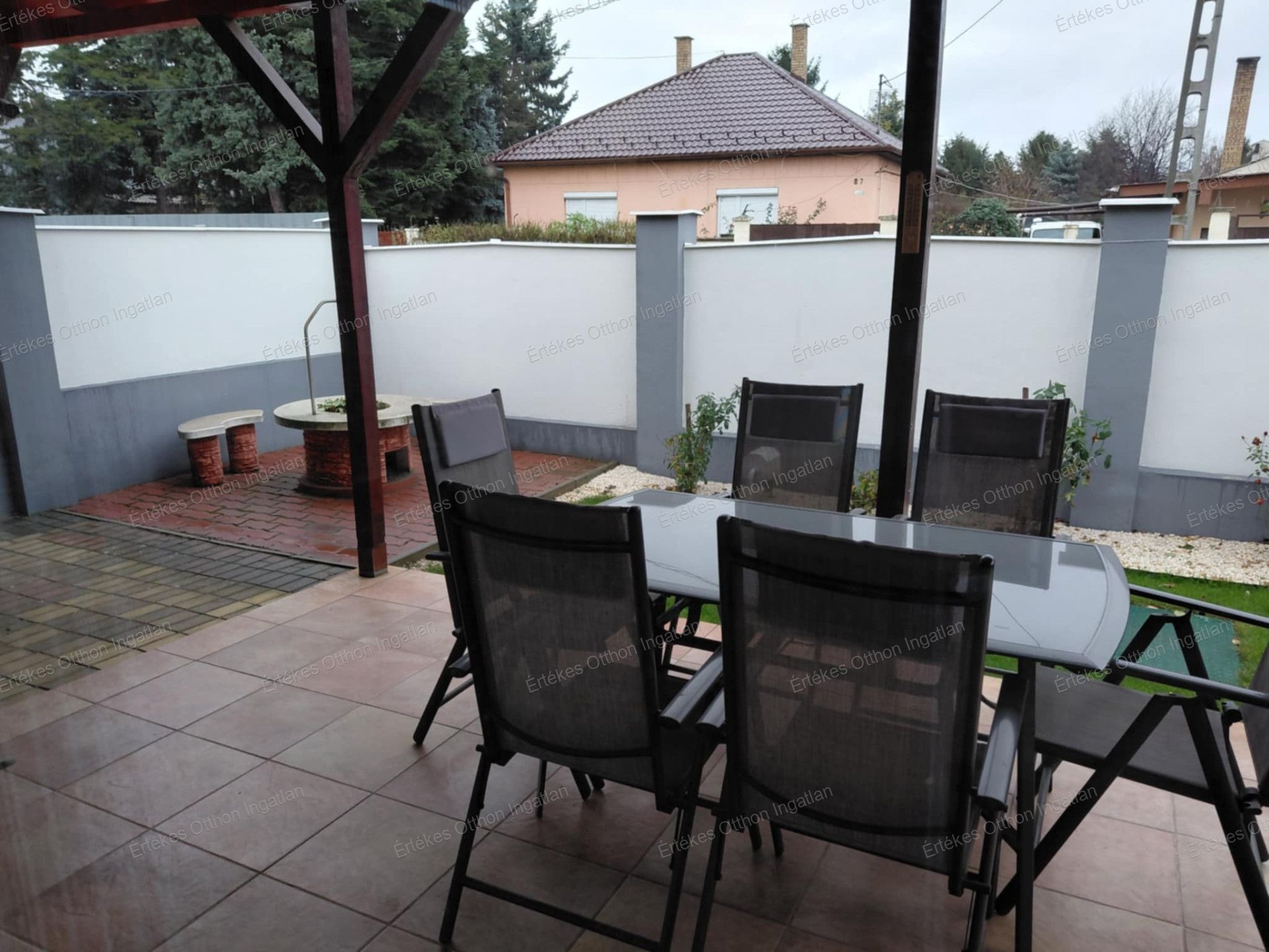 A nappaliból kilépve a körbefalazott teraszra teljes nyugalomban élvezheted a reggeli kávédat – egy kis saját oázis, amely garantálja a maximális privát szférát.