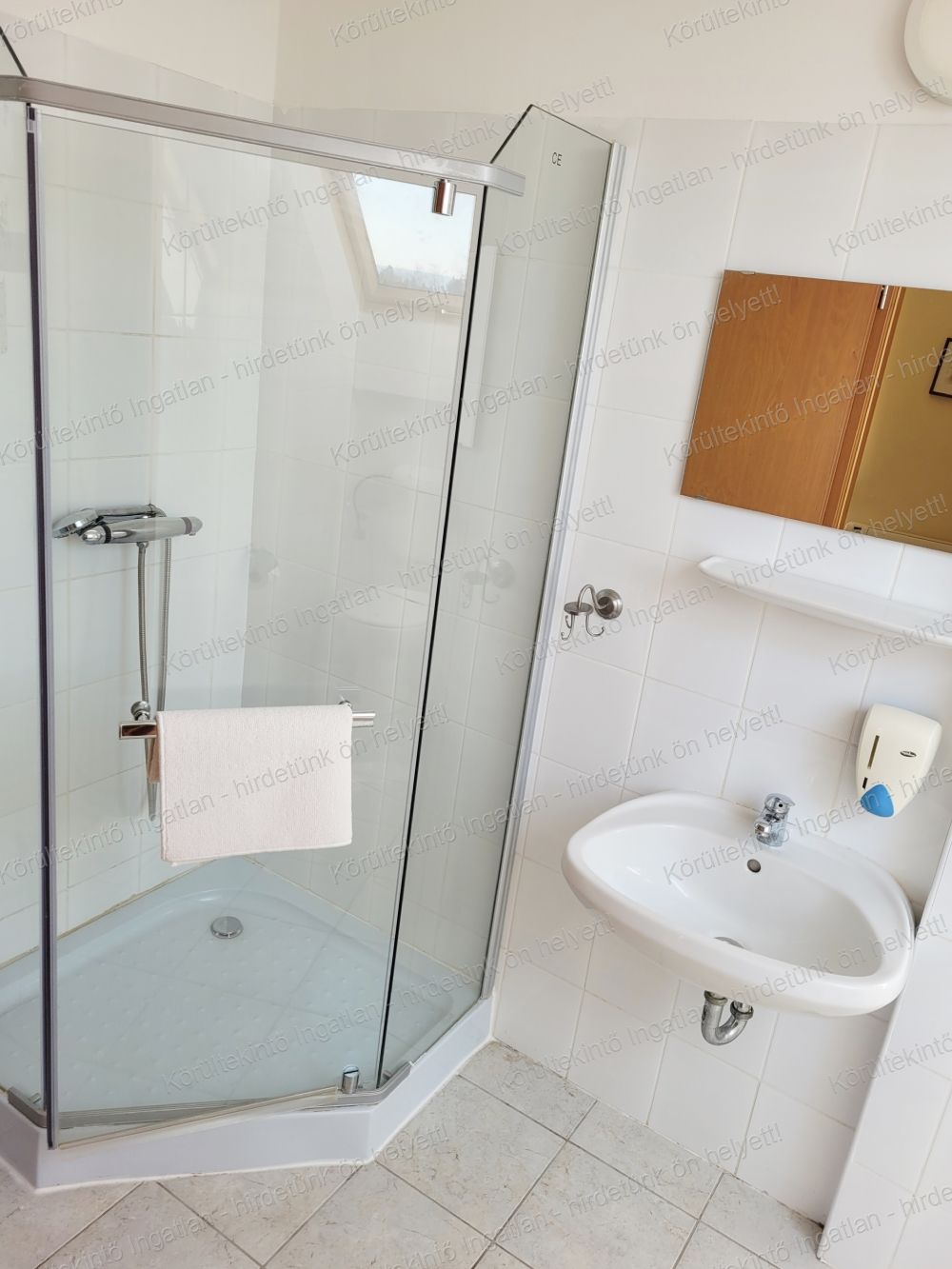 6 kétágyas szoba önálló fürdővel, két lakrész két szobával négy ággyal és saját, nagy méretű fürdővel rendelkezik.
