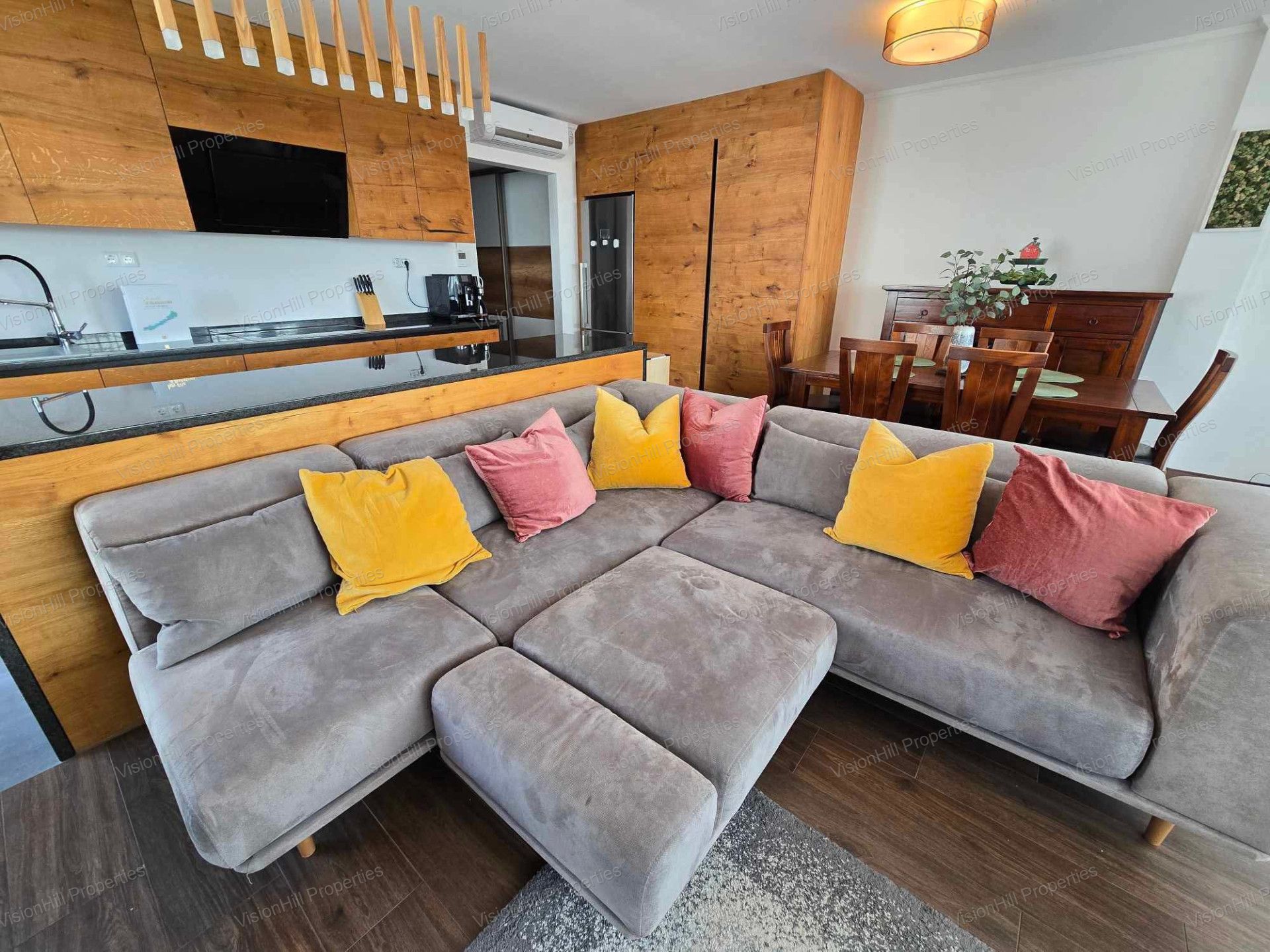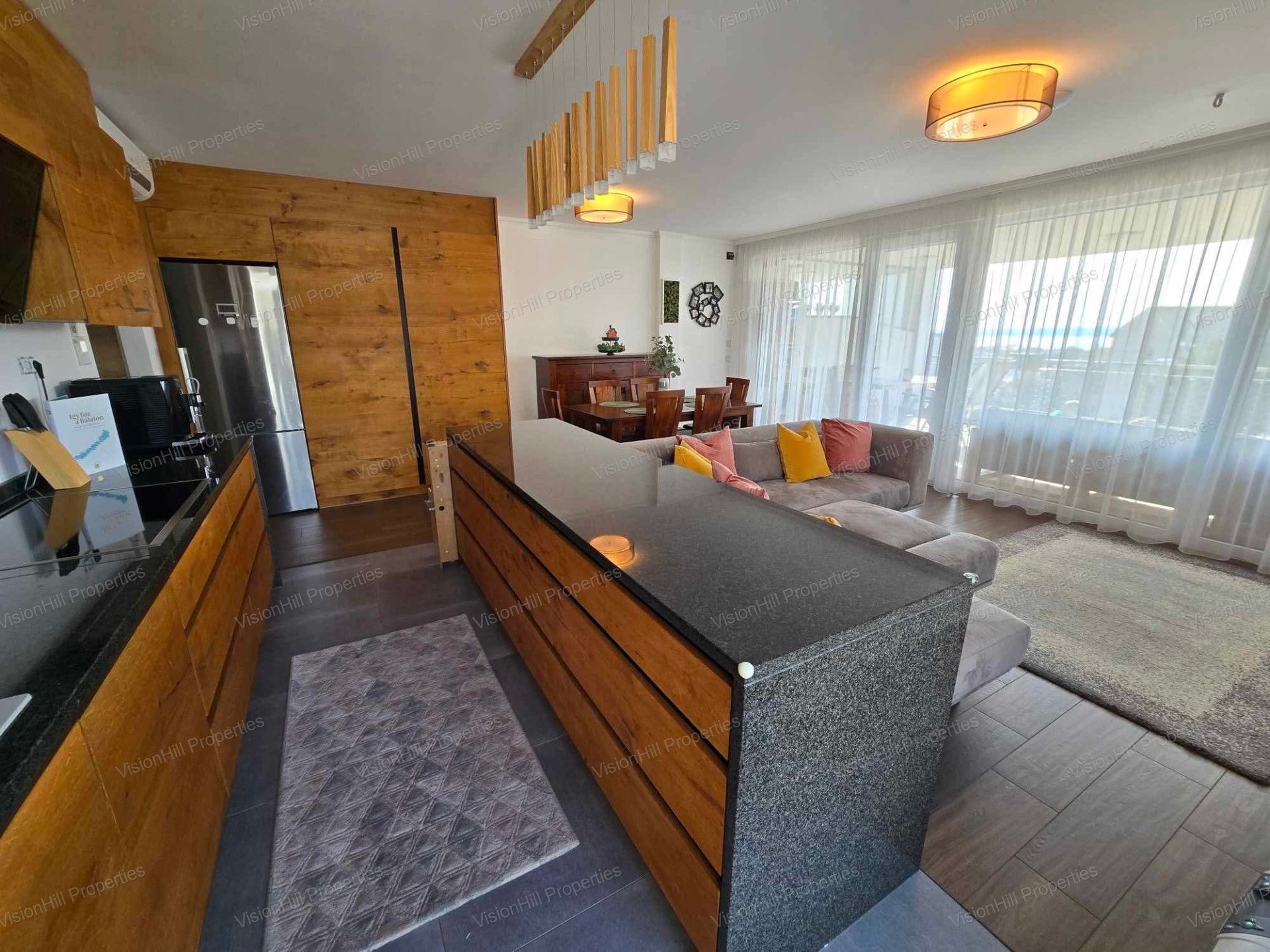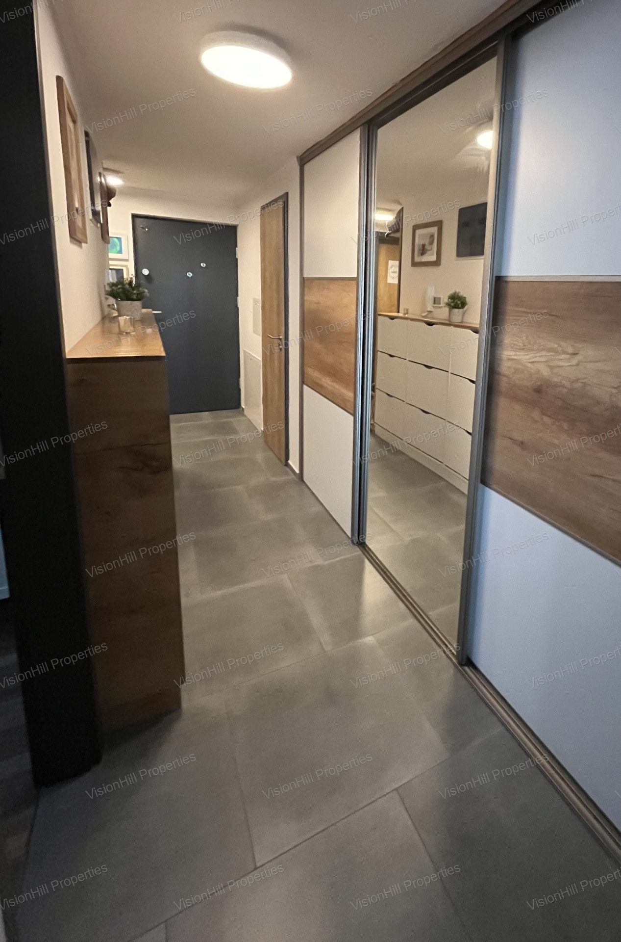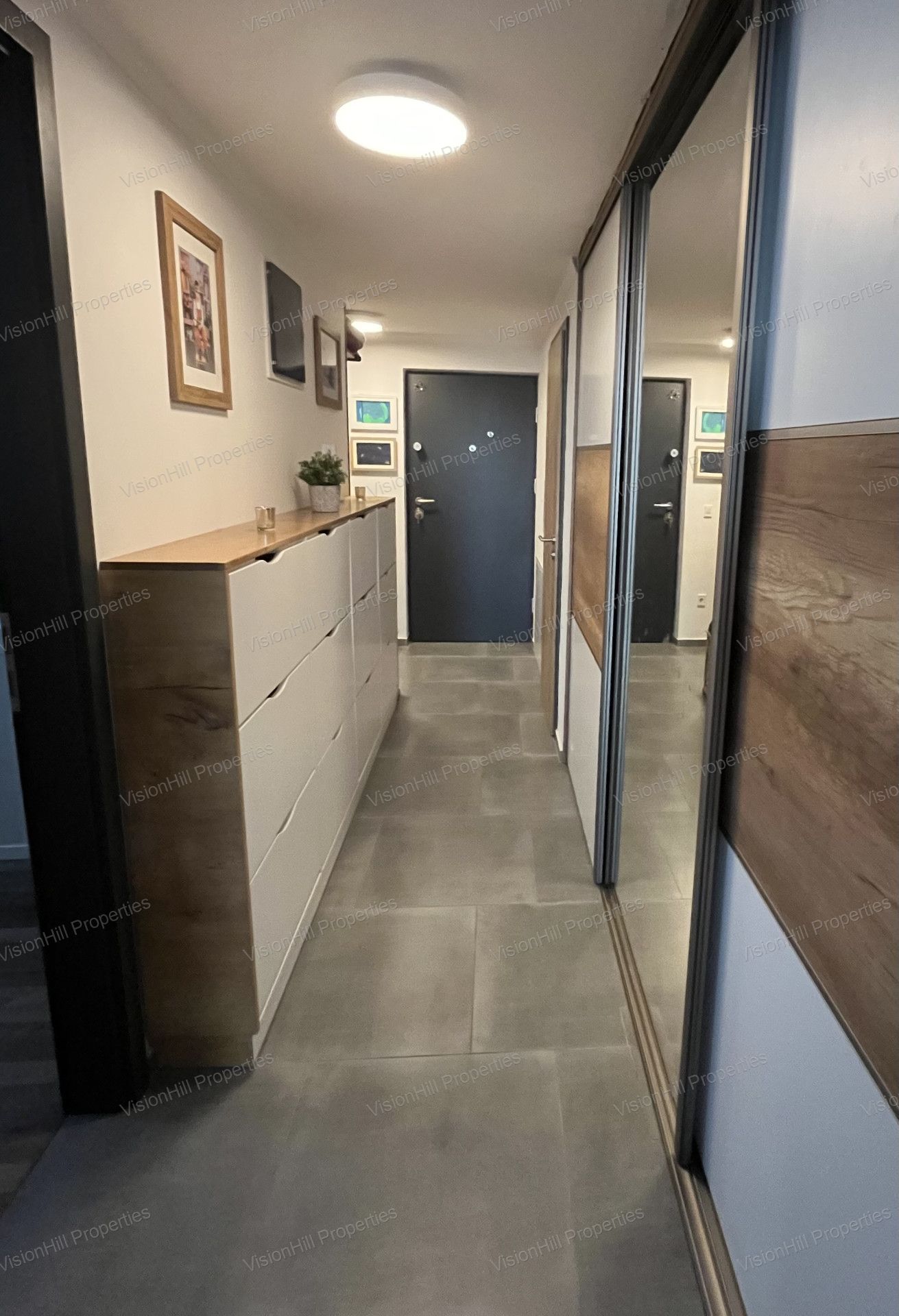 A lakás belső tere harmonikusan ötvözi a modern kényelmet és az elegáns megjelenést.