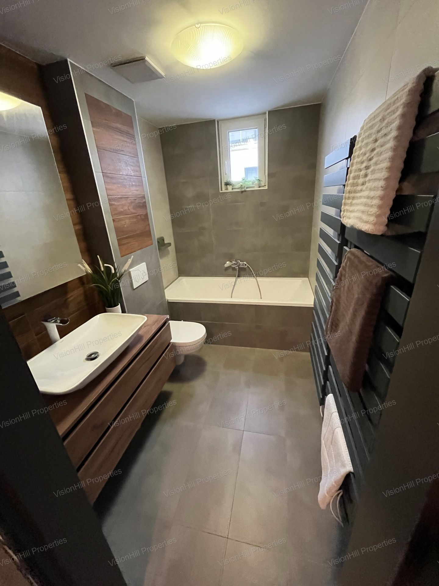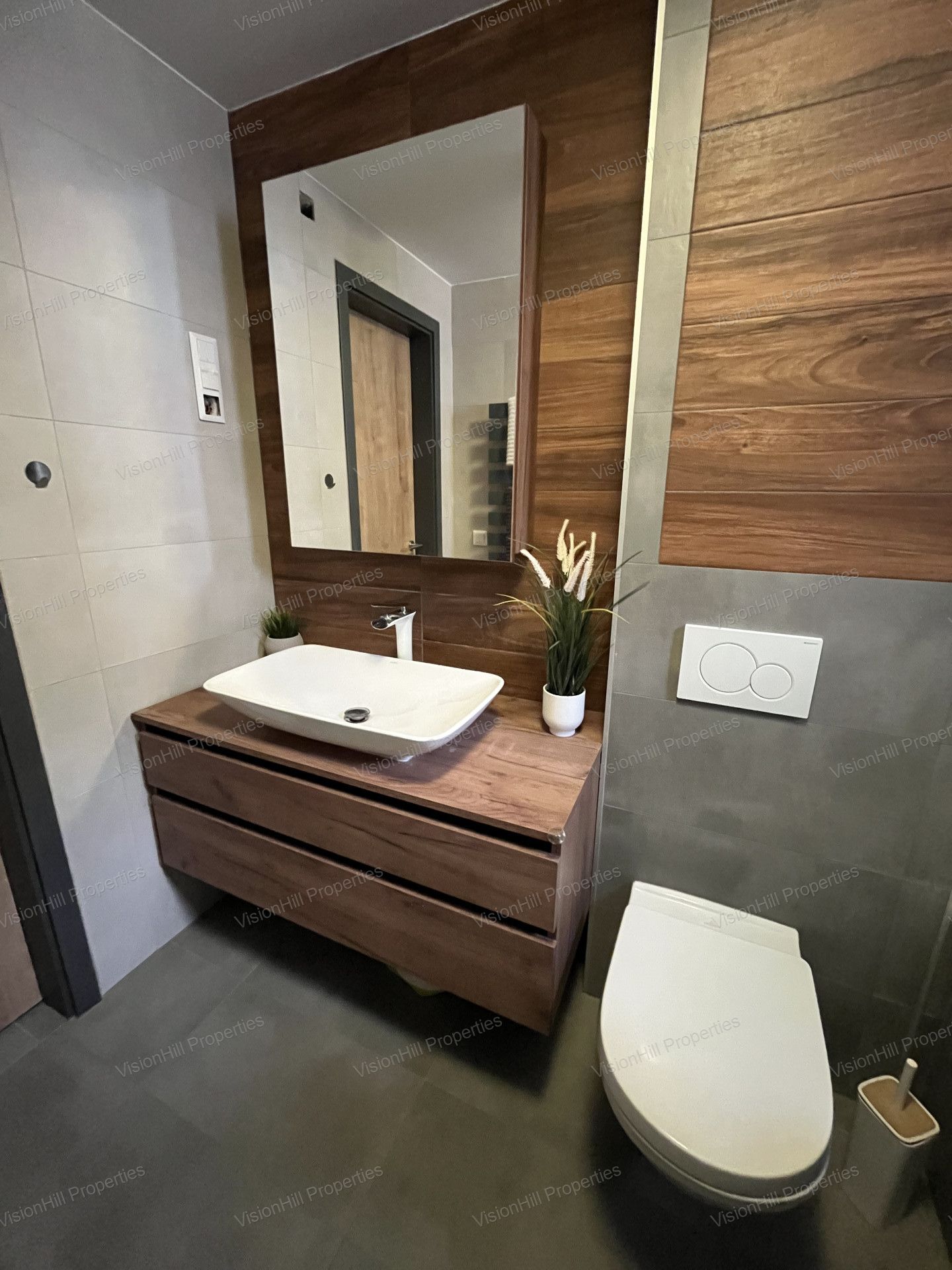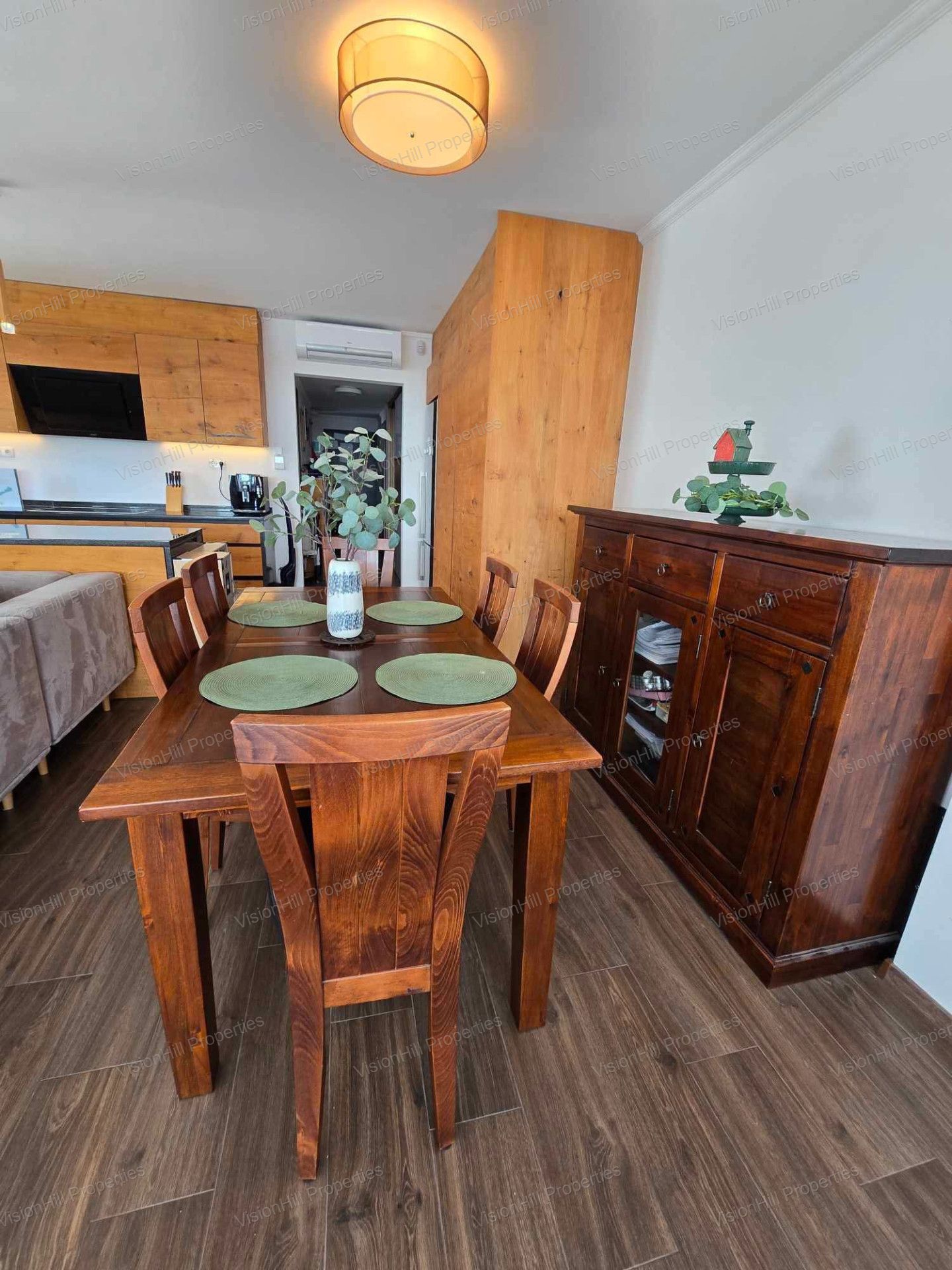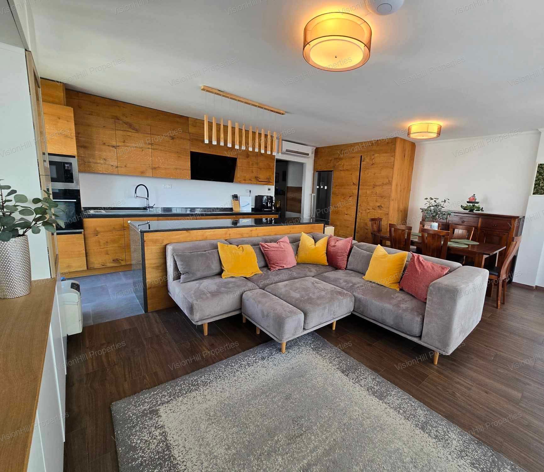 A lakás belső tere harmonikusan ötvözi a modern kényelmet és az elegáns megjelenést.