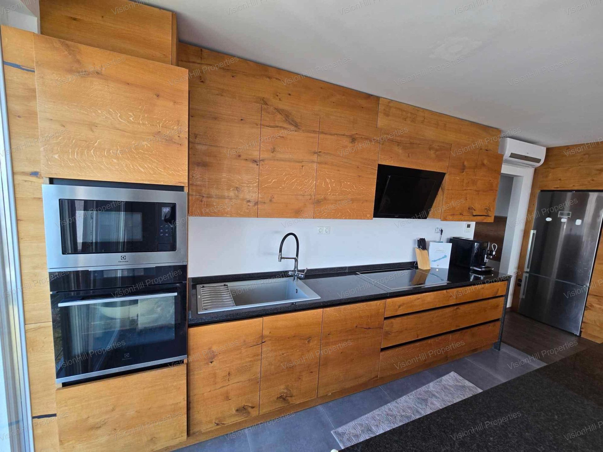 A konyha teljesen gépesített, prémium kategóriás háztartási gépekkel és asztalos által készített, egyedi konyhabútorral, melyet gránit munkapult tesz igazán exkluzívvá.