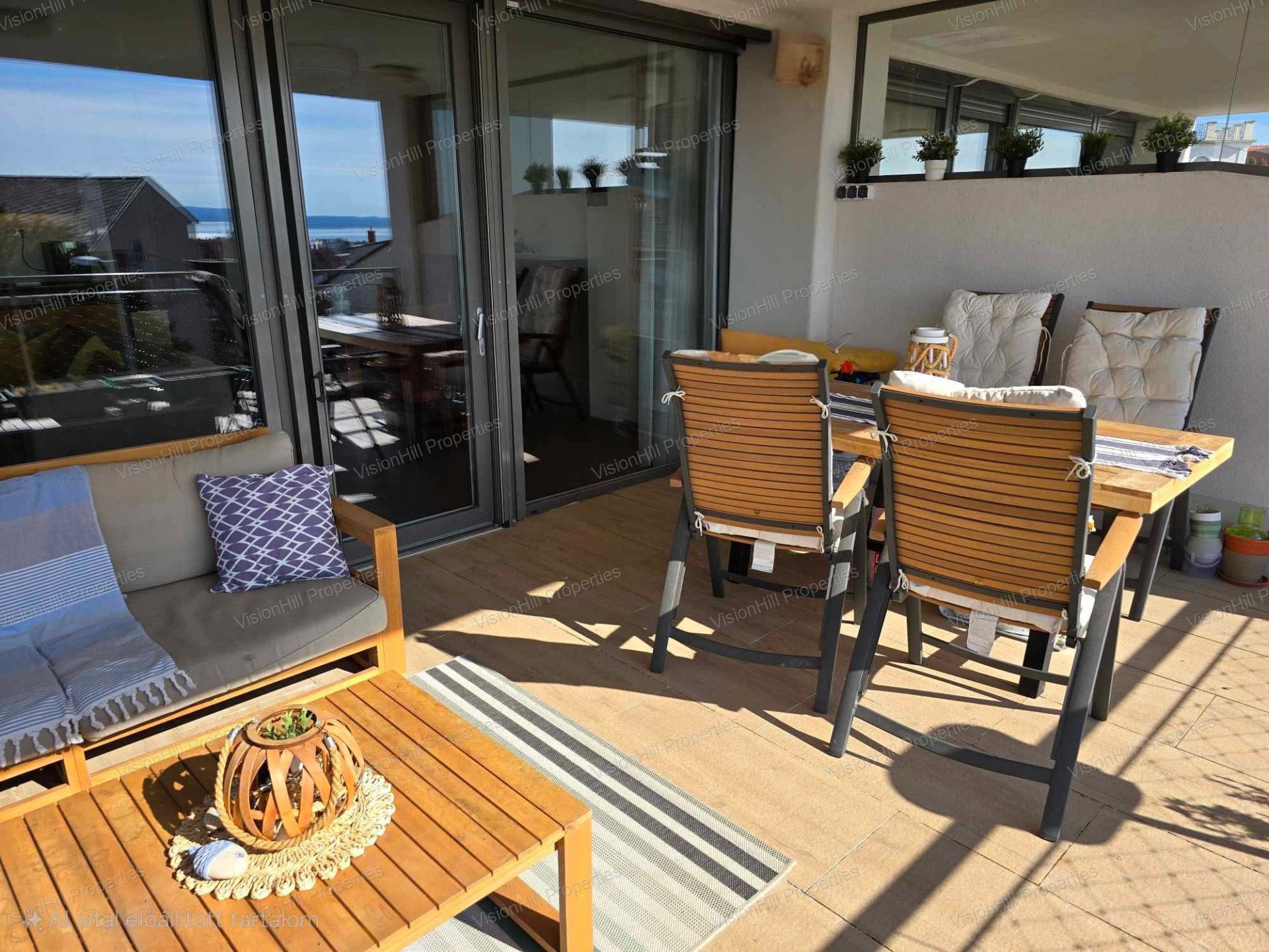 A 24 m²-es, fedett, örökpanorámás terasz a lakás egyik ékköve.