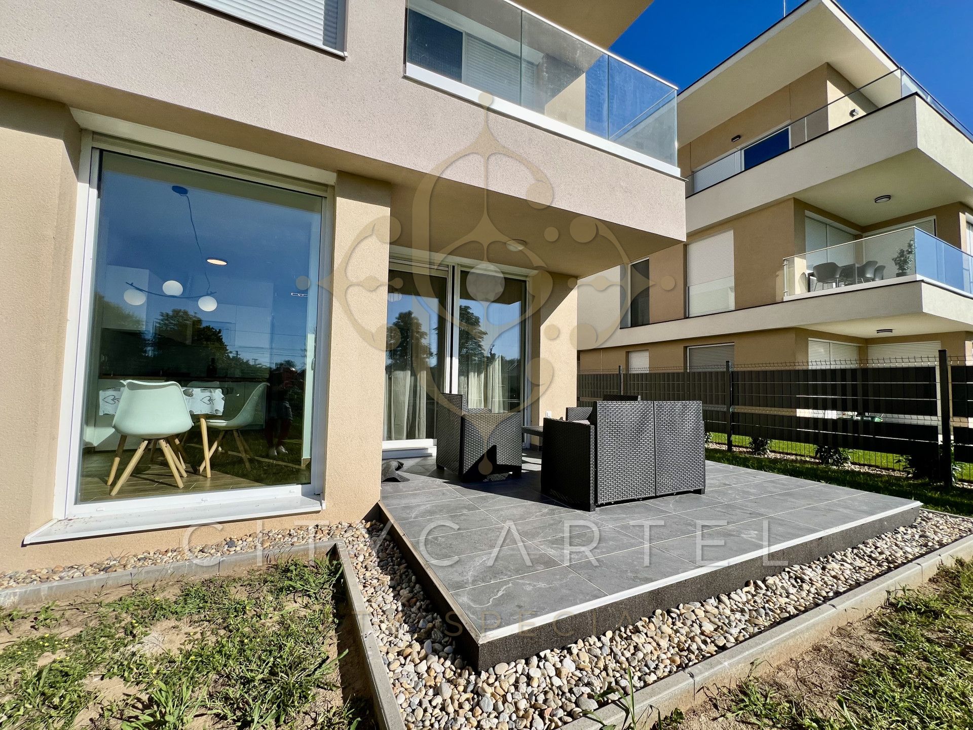 A CITY CARTEL INGATLANIRODA eladásra kínál Balatonlellén, új építésű társasházban található, berendezett, gépiesített konyhával felszerelt, földszinti, 1+1 szobás, 41 m2 lakóterületű, kertkapcsolatos téglalakást.