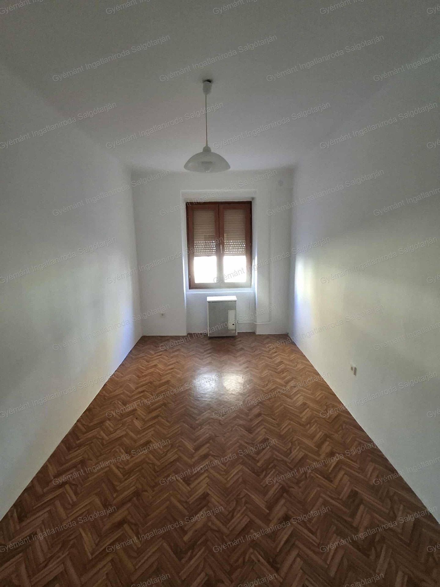A nyílászárók fából vannak, az egyik szoba parkettás a másikban pvc található.